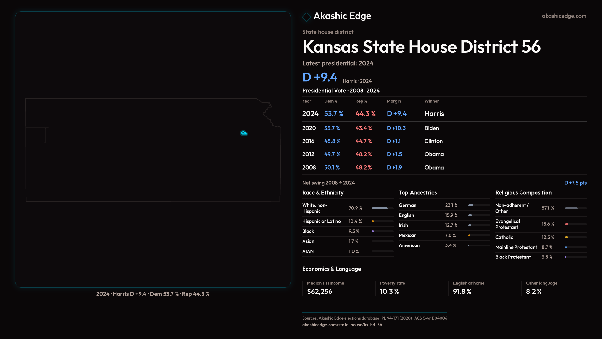 Who lives in Kansas State House District 56? 23,535 residents as of the 2020 Census.