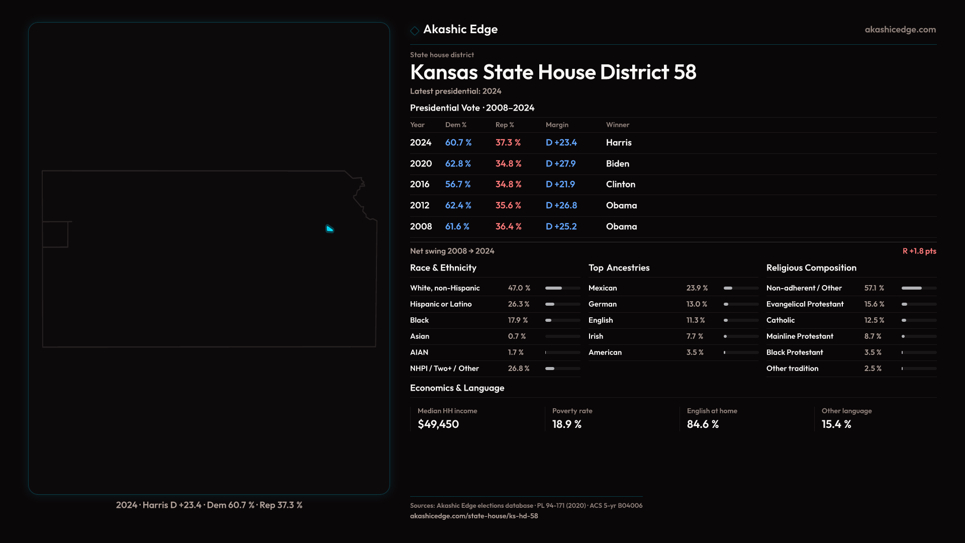 Who lives in Kansas State House District 58? 23,512 residents as of the 2020 Census.