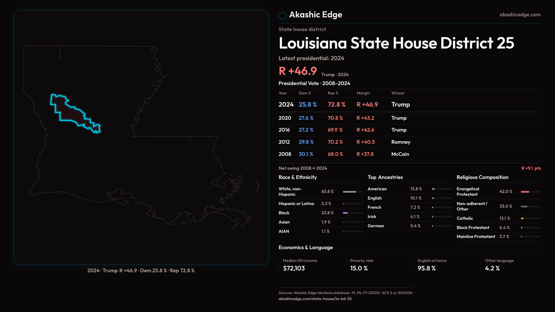 Read this geography's profile in three layers: local, state (where available), and national baseline.