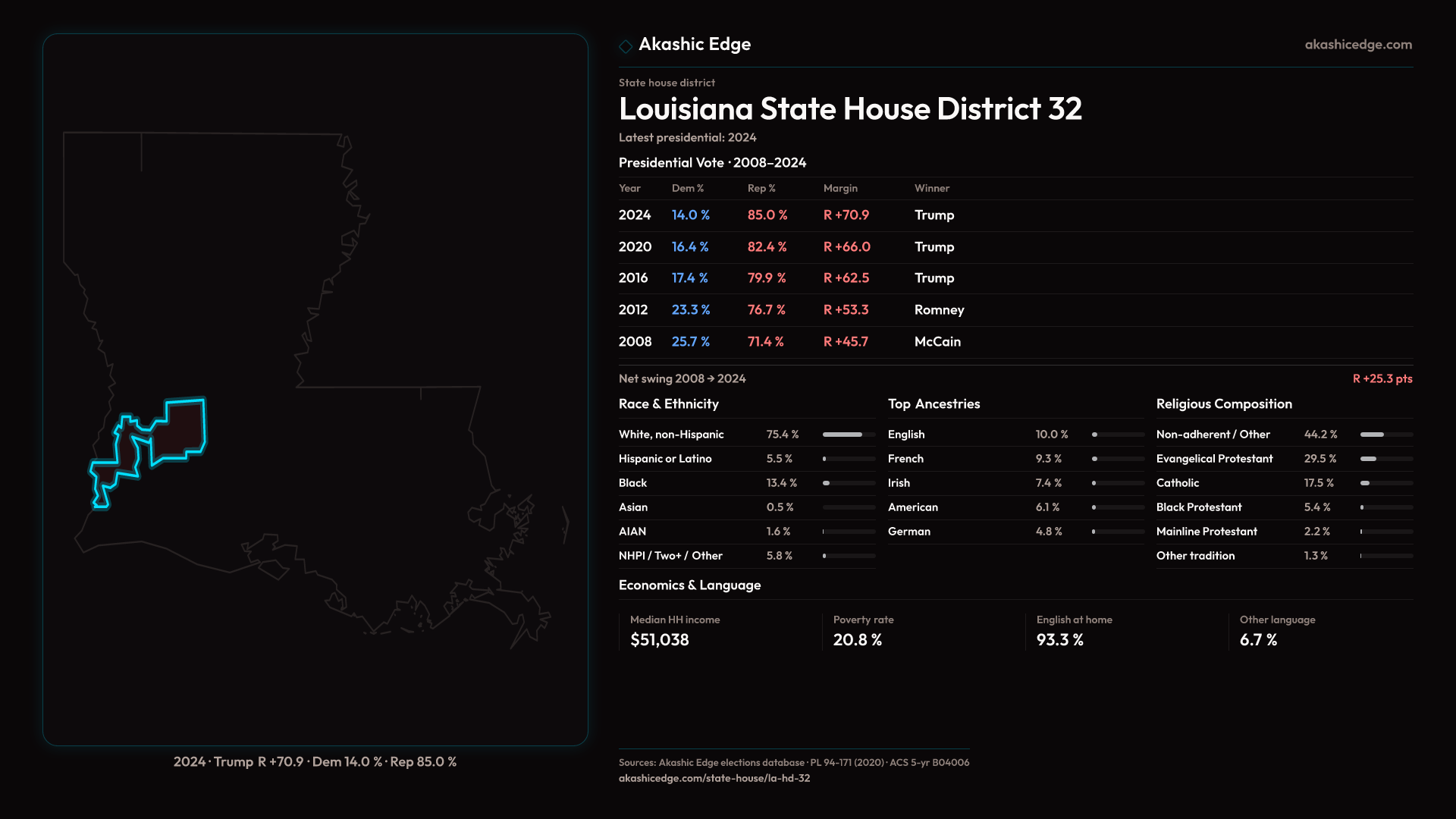 Read this geography's profile in three layers: local, state (where available), and national baseline.