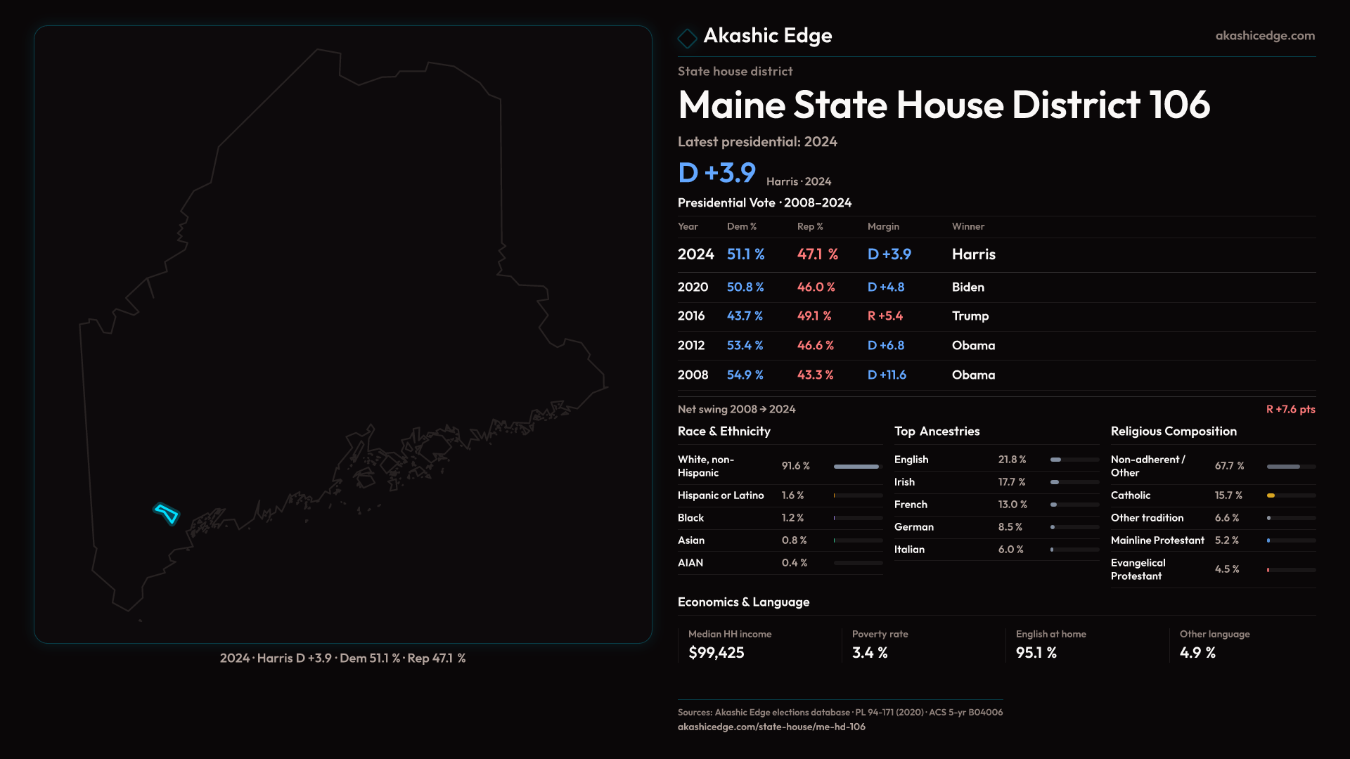 Who lives in Maine State House District 106? 9,155 residents as of the 2020 Census.