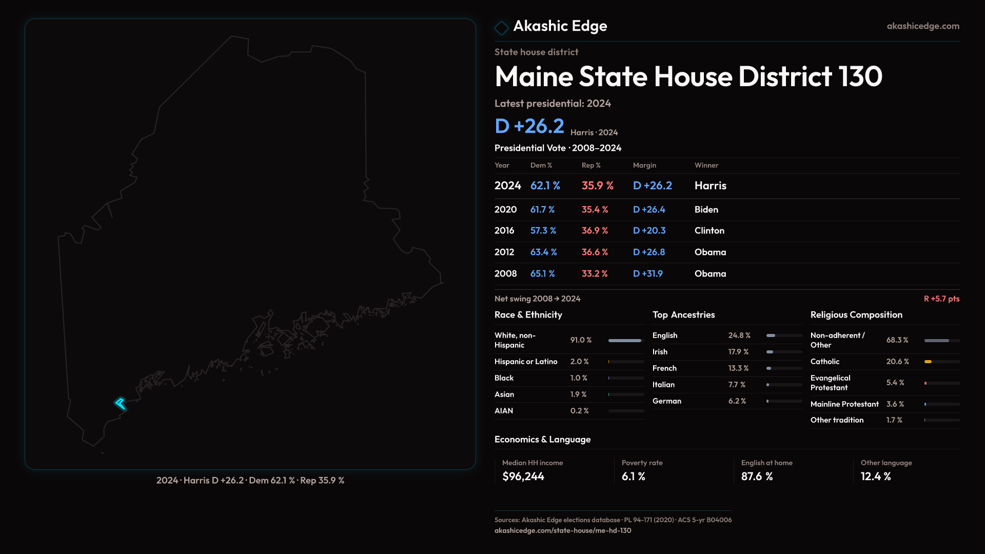 Read this geography's profile in three layers: local, state (where available), and national baseline.