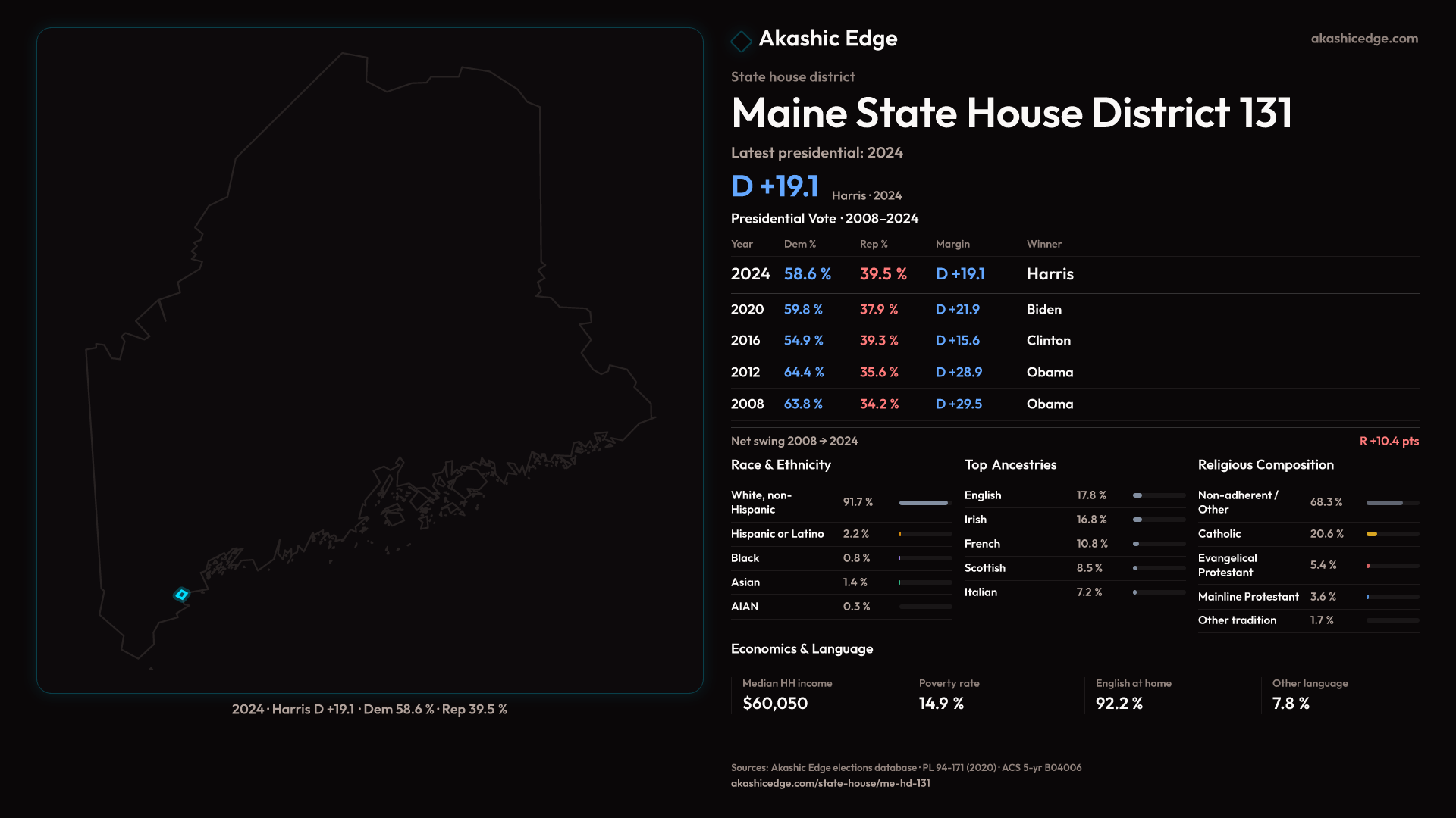 Who lives in Maine State House District 131? 8,960 residents as of the 2020 Census.