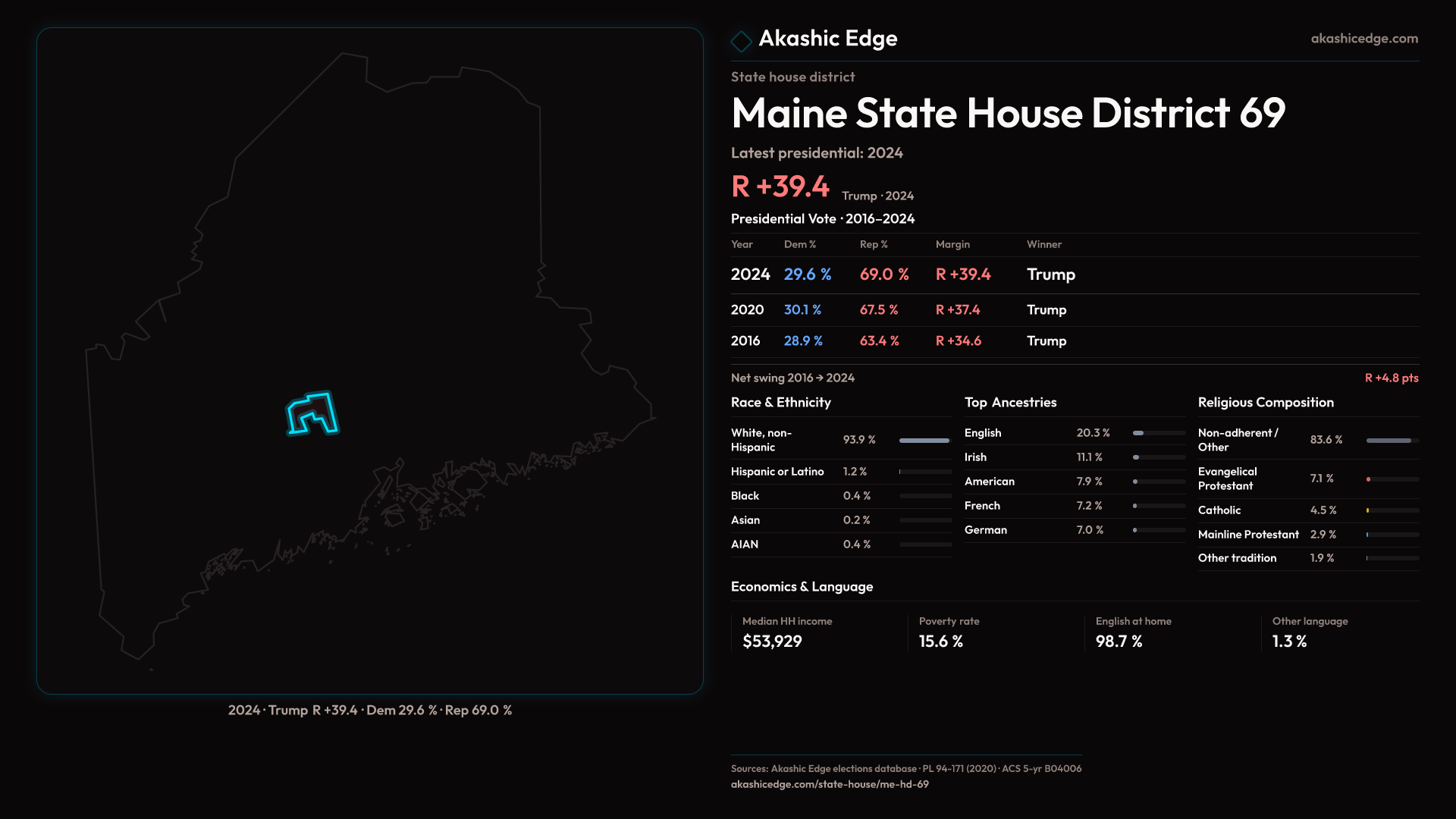 Who lives in Maine State House District 69? 8,752 residents as of the 2020 Census.