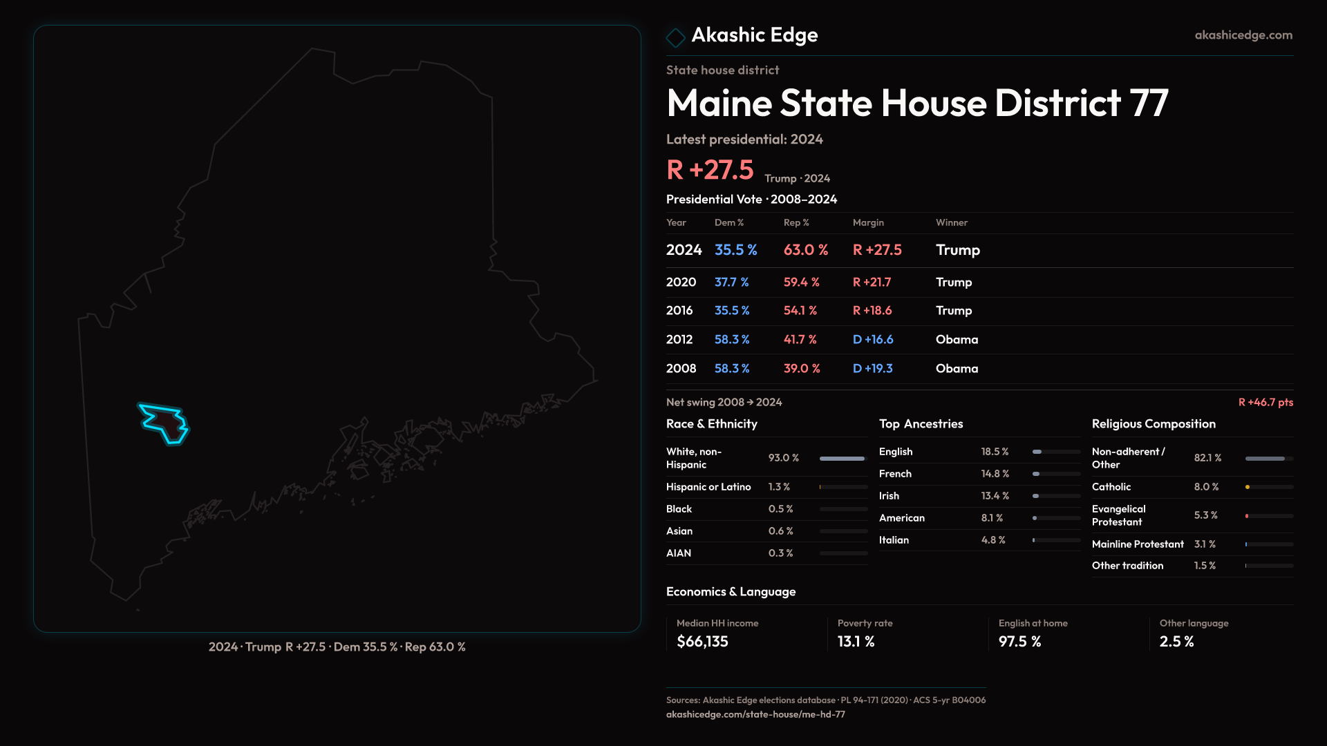 Who lives in Maine State House District 77? 9,178 residents as of the 2020 Census.