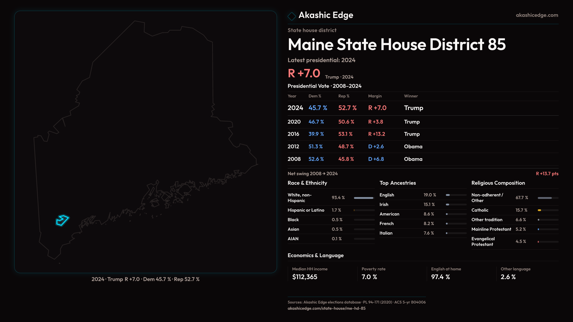 Who lives in Maine State House District 85? 8,822 residents as of the 2020 Census.