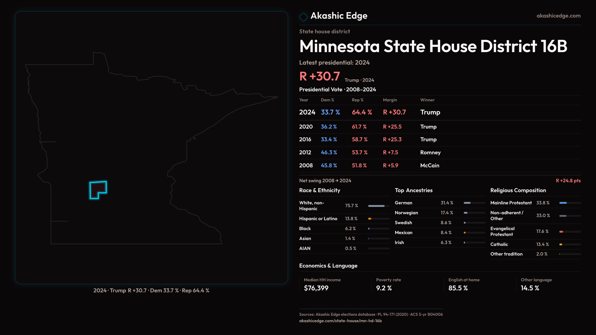 Safe Republican — shifted 5.2pp toward Republicans in 2024 — 43K residents