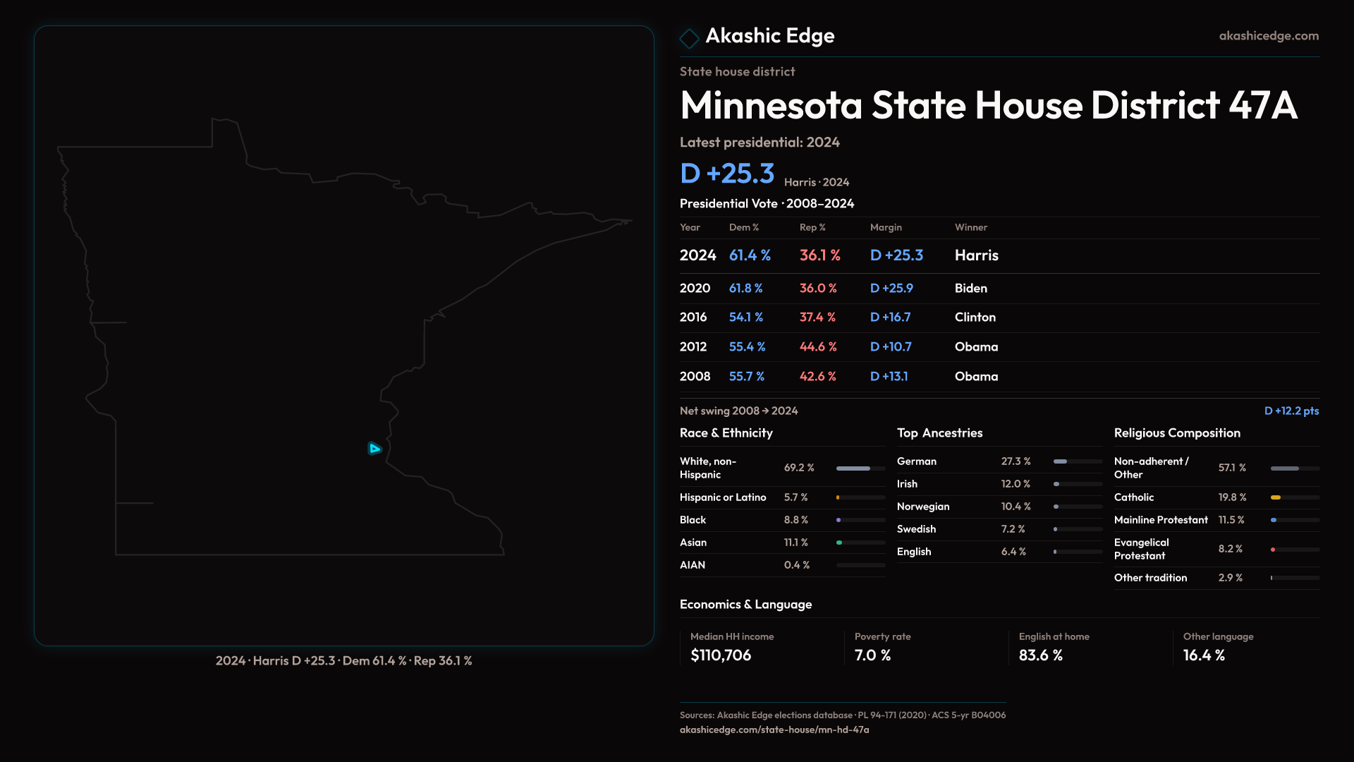 Read this geography's profile in three layers: local, state (where available), and national baseline.