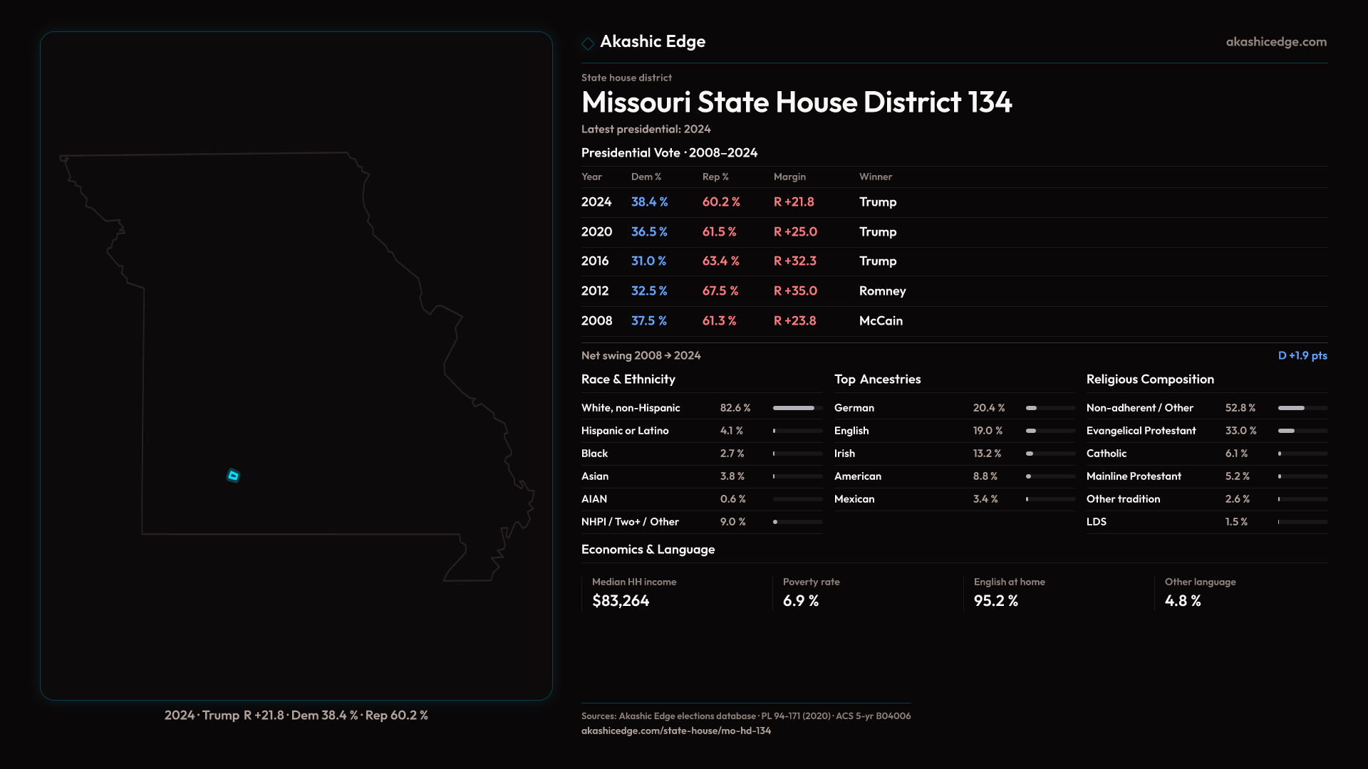 Who lives in Missouri State House District 134? 37,447 residents as of the 2020 Census.