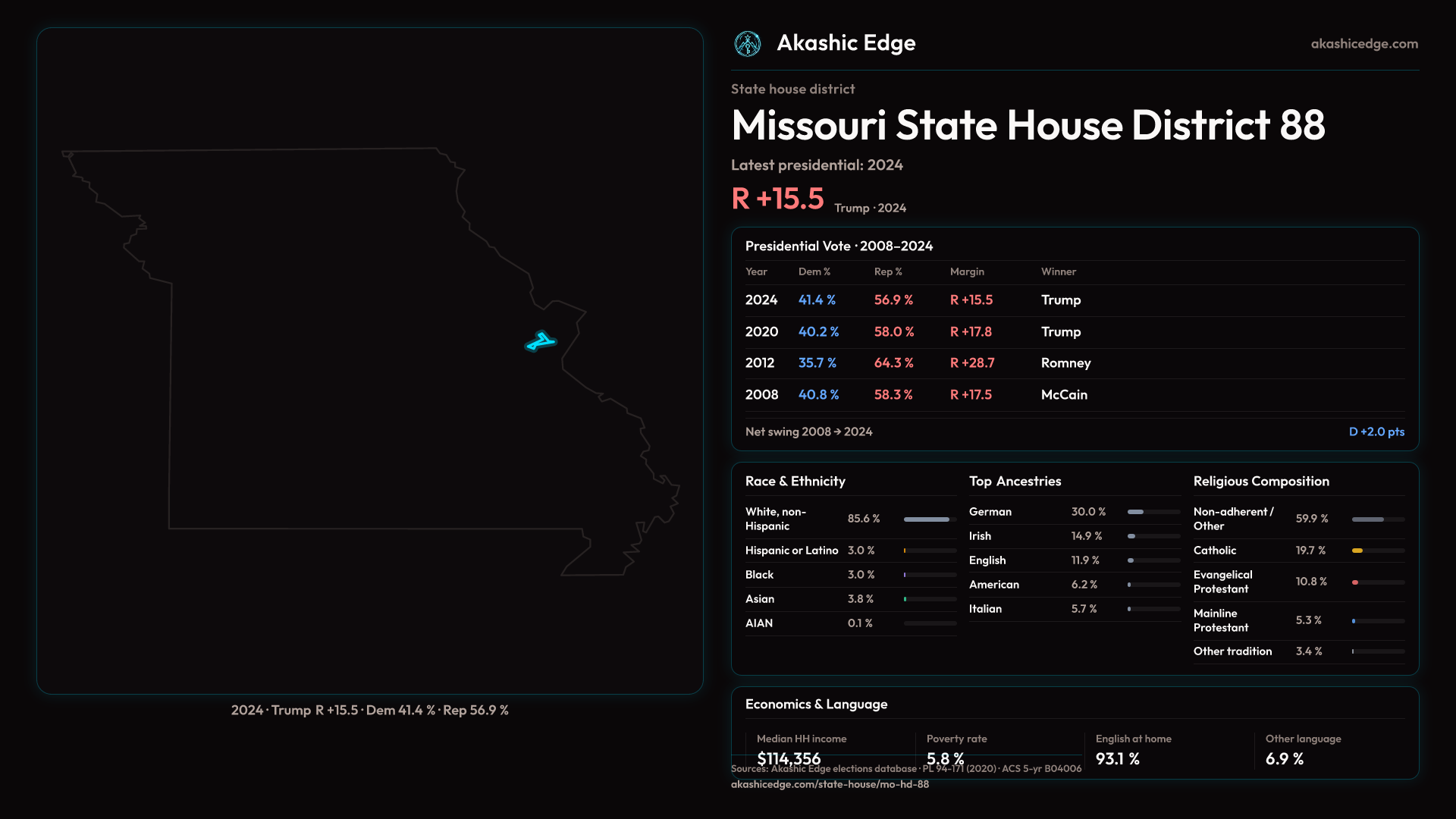 Who lives in Missouri State House District 88? 38,857 residents as of the 2020 Census.