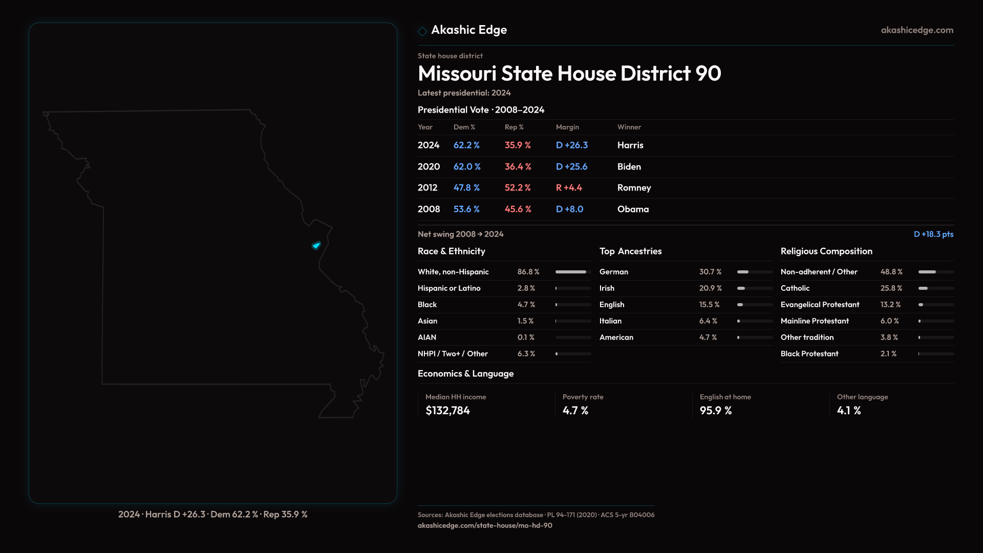 Who lives in Missouri State House District 90? 36,702 residents as of the 2020 Census.