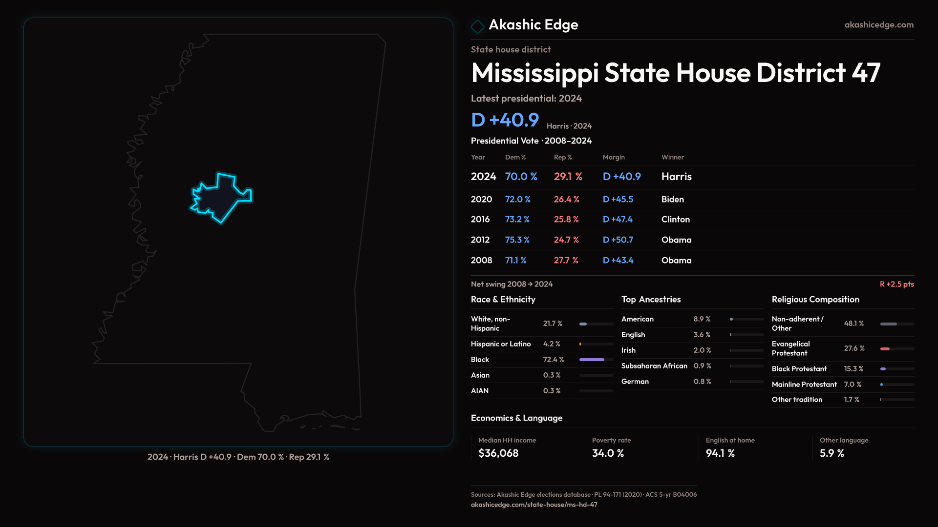 Who lives in Mississippi State House District 47? 24,021 residents as of the 2020 Census.