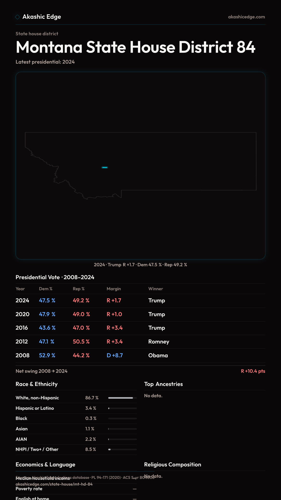 Who lives in Montana State House District 84? 10,729 residents as of the 2020 Census.