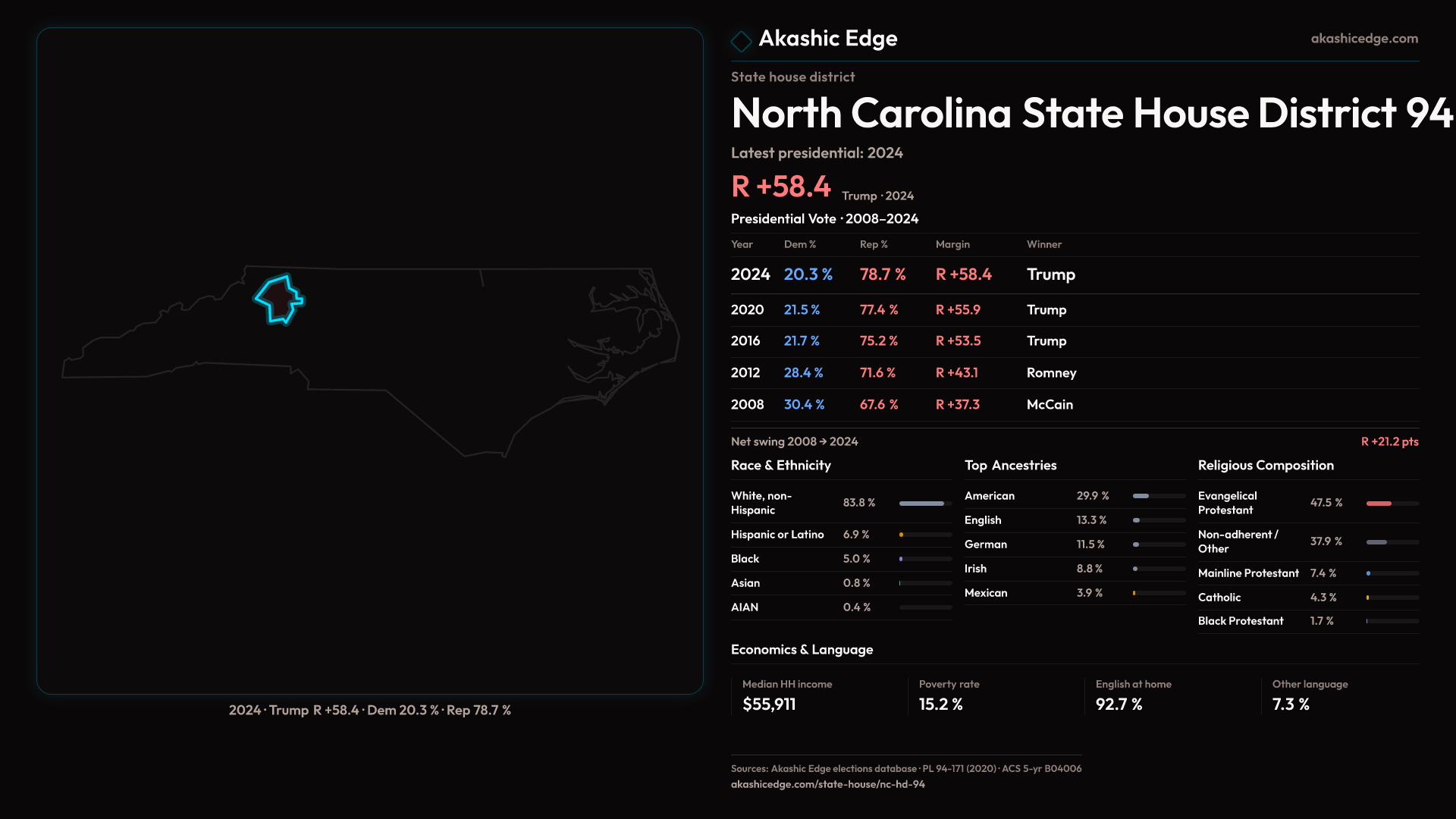 Who lives in North Carolina State House District 94? 85,564 residents as of the 2020 Census.