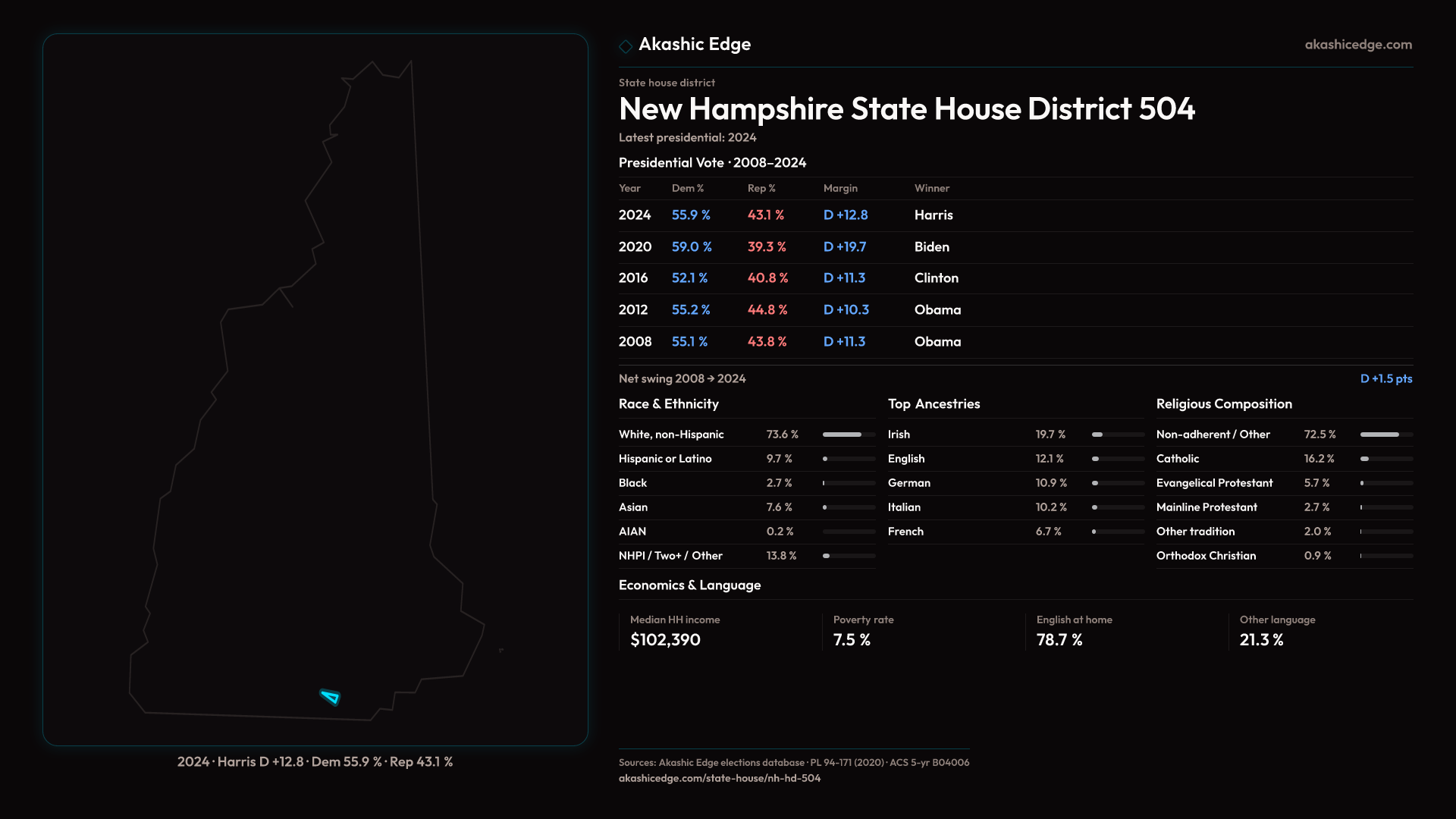 Who lives in New Hampshire State House District 504? 10,348 residents as of the 2020 Census.