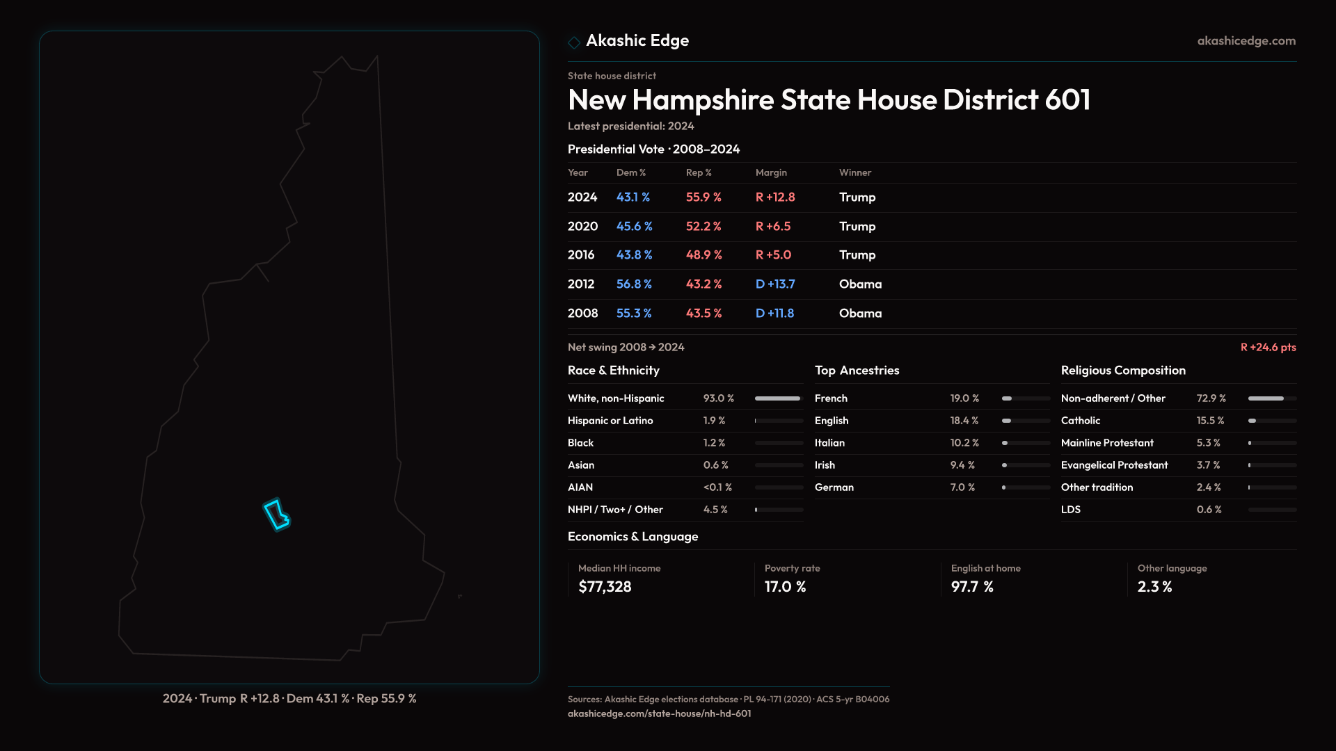 Leans Republican — shifted 6.3pp toward Republicans in 2024 — 4K residents