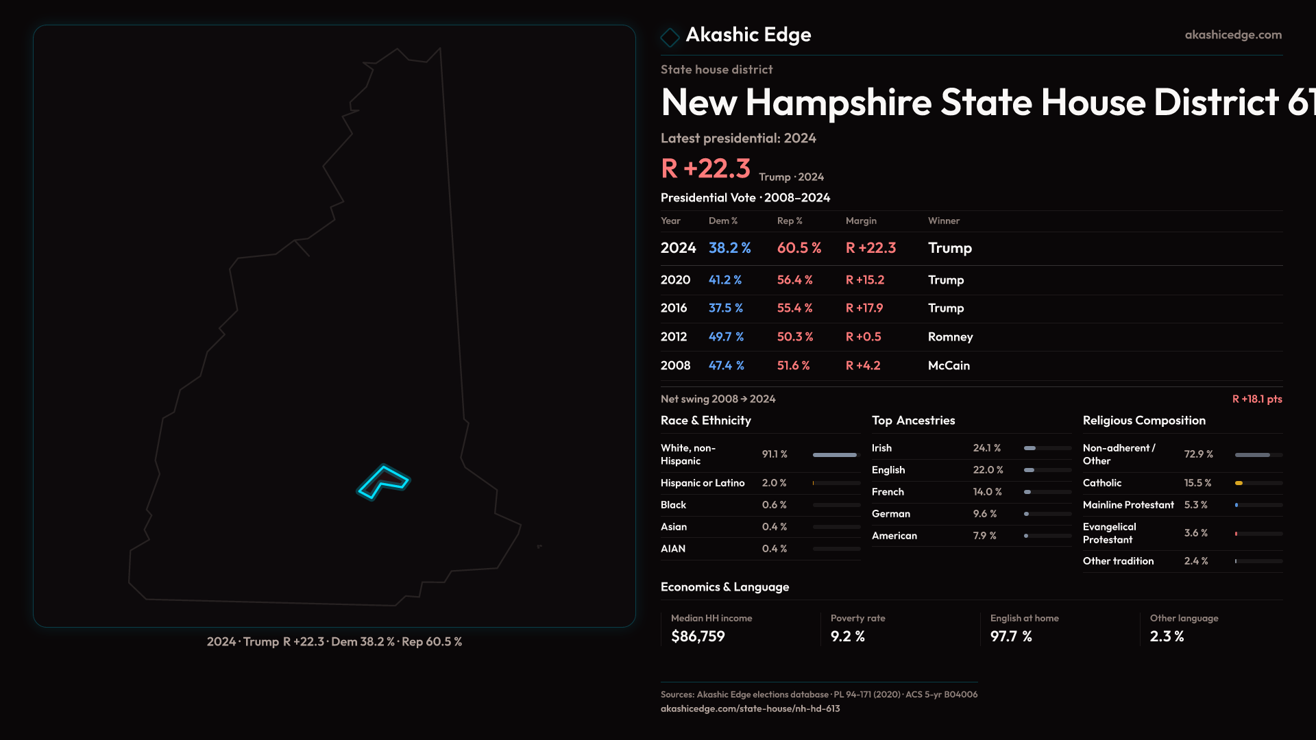 Read this geography's profile in three layers: local, state (where available), and national baseline.