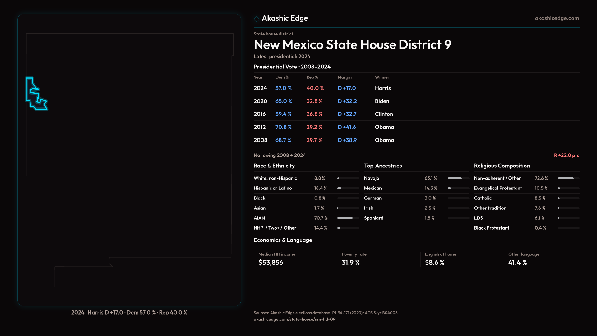 Who lives in New Mexico State House District 9? 28,195 residents as of the 2020 Census.
