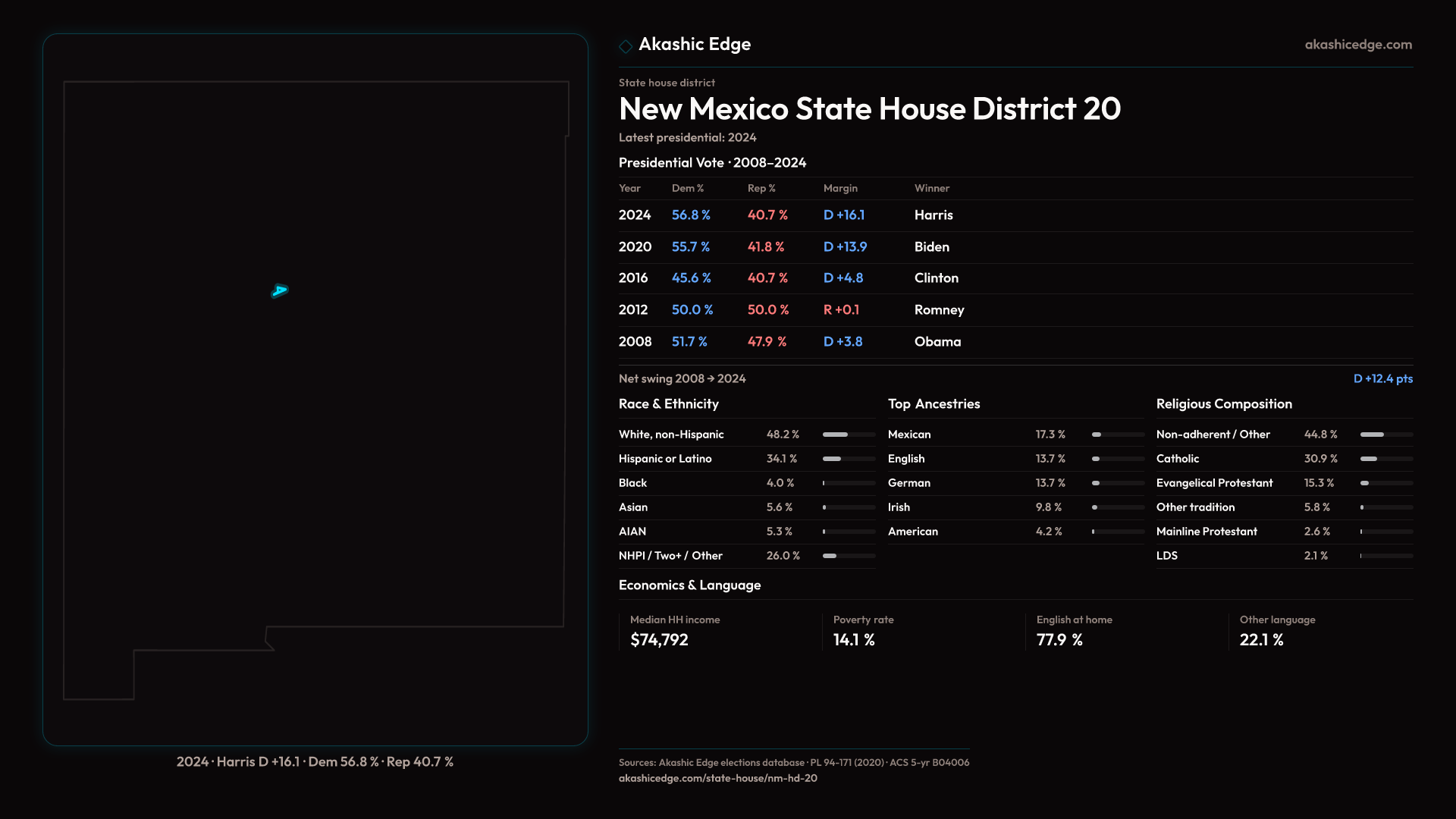 Who lives in New Mexico State House District 20? 30,886 residents as of the 2020 Census.
