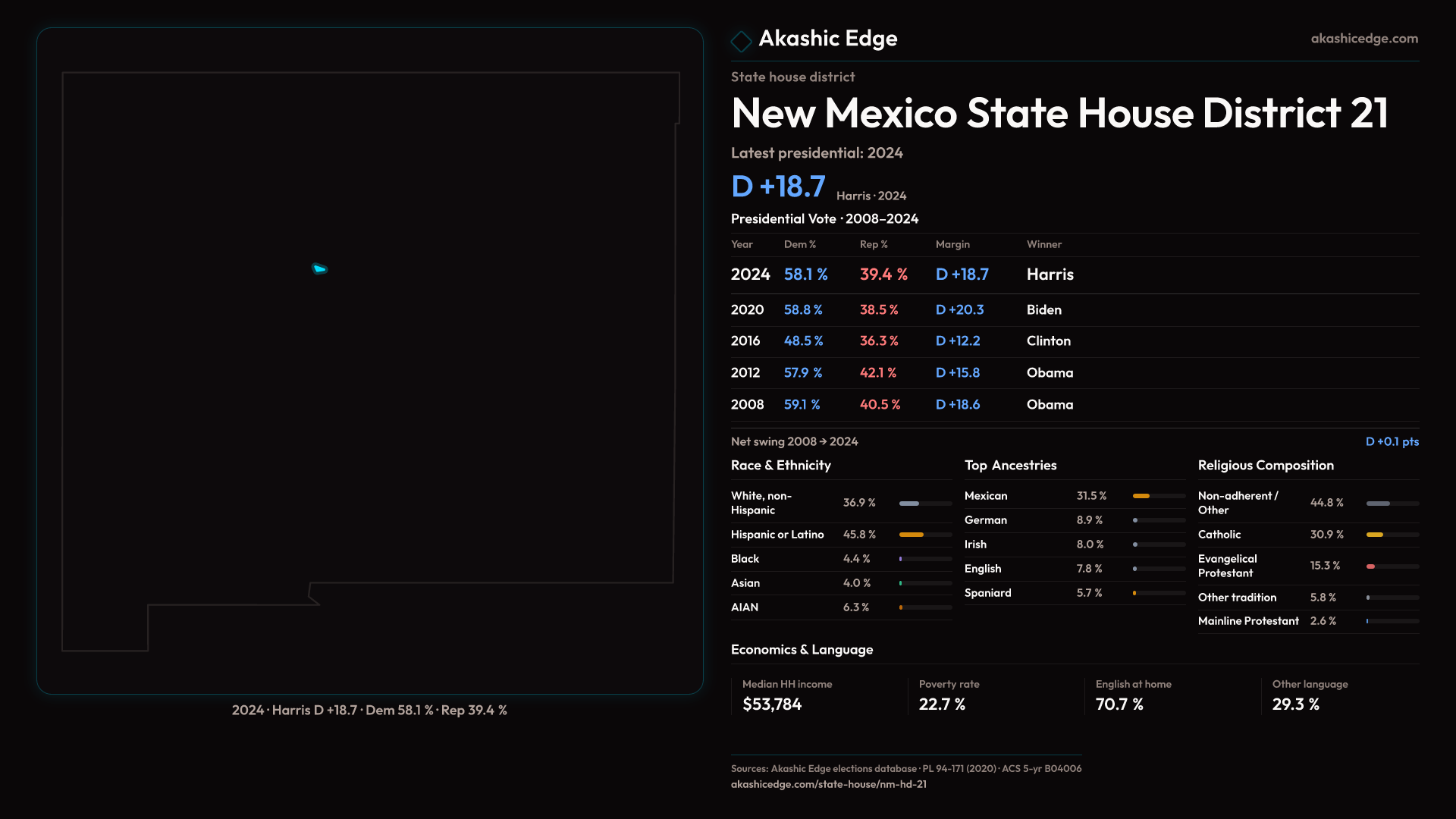 Who lives in New Mexico State House District 21? 30,064 residents as of the 2020 Census.