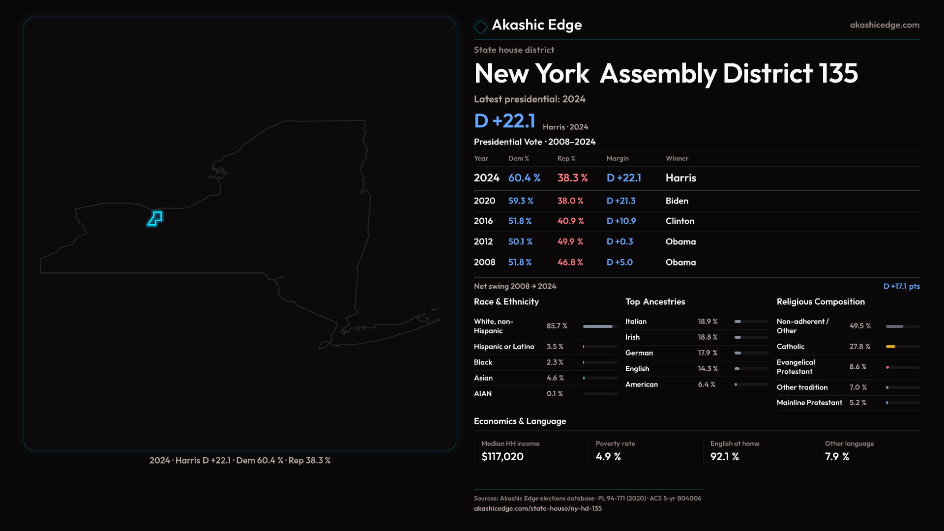 Who lives in New York Assembly District 135? 132,963 residents as of the 2020 Census.
