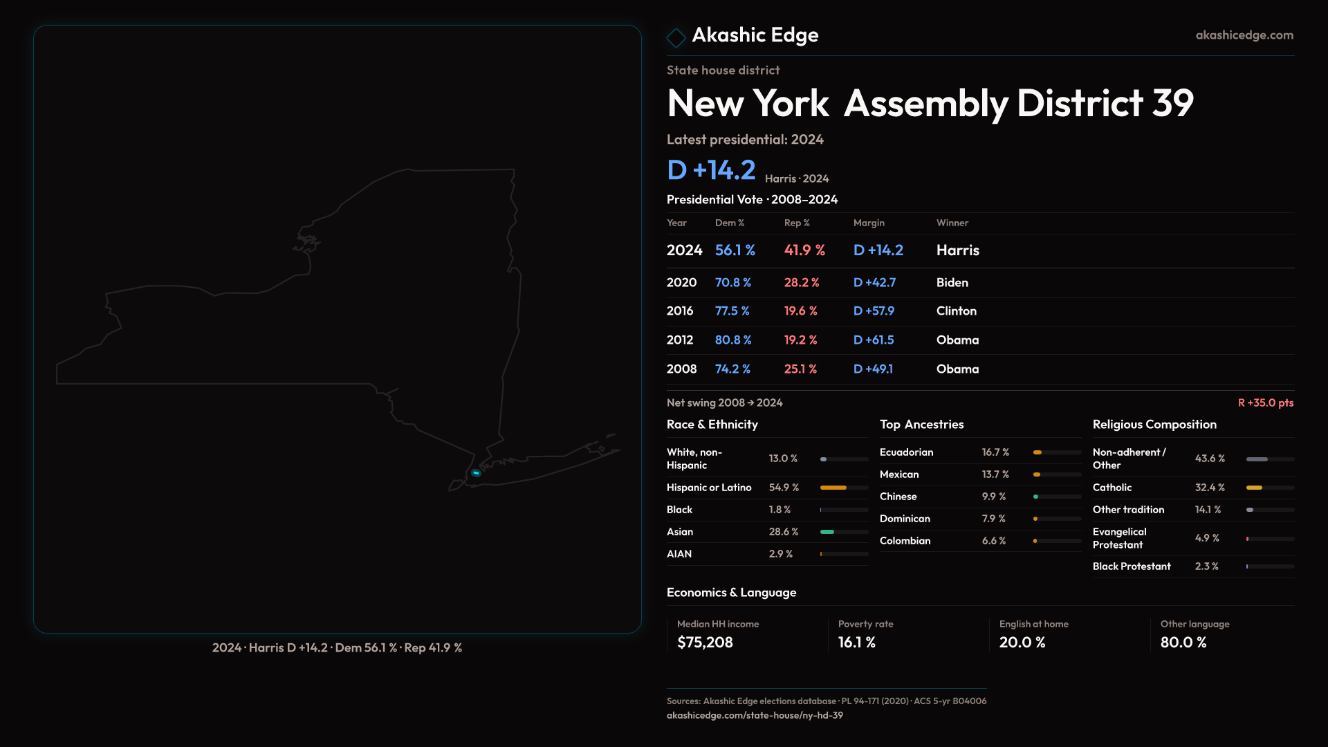 Who lives in New York Assembly District 39? 130,727 residents as of the 2020 Census.