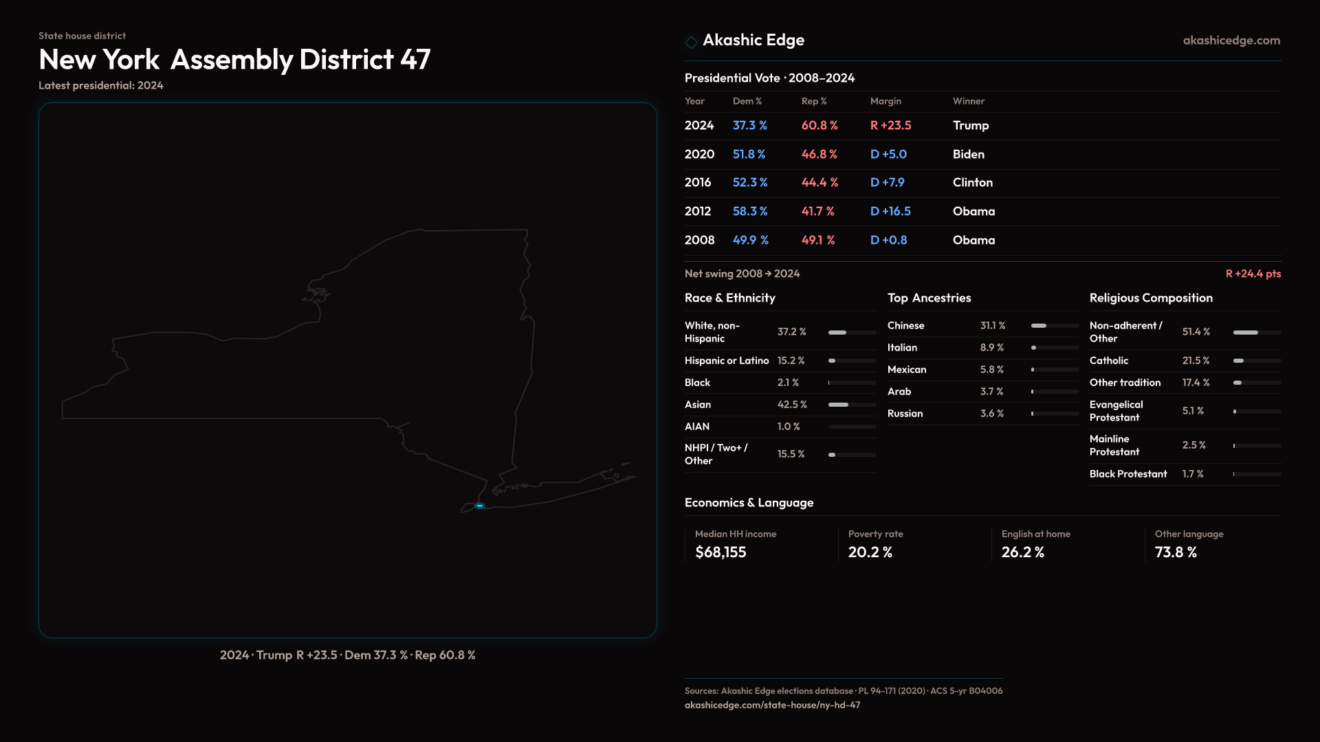 Who lives in New York Assembly District 47? 138,689 residents as of the 2020 Census.