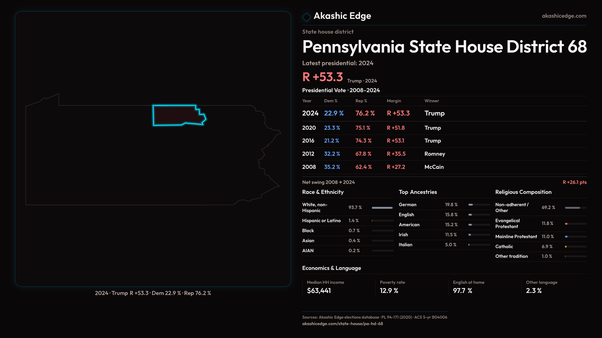 Read this geography's profile in three layers: local, state (where available), and national baseline.