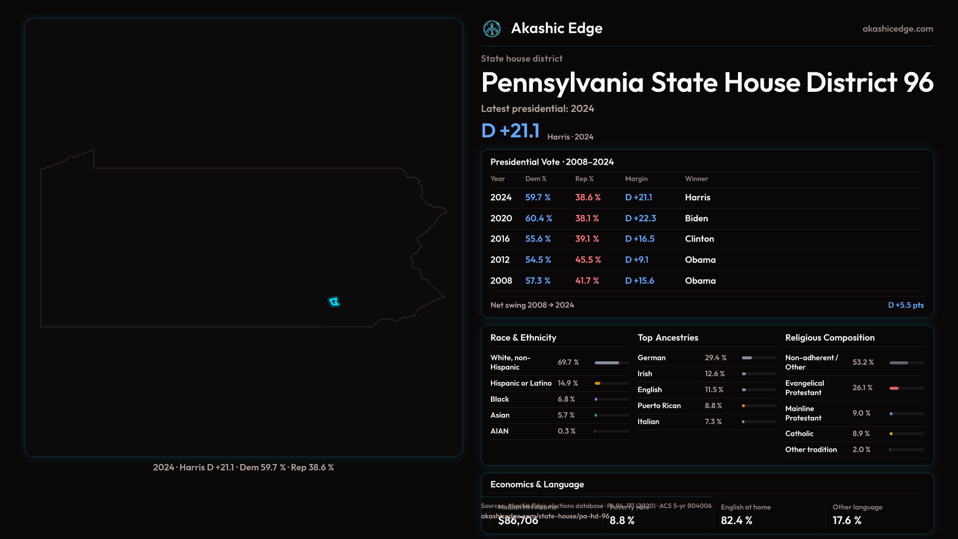 Who lives in Pennsylvania State House District 96? 63,354 residents as of the 2020 Census.