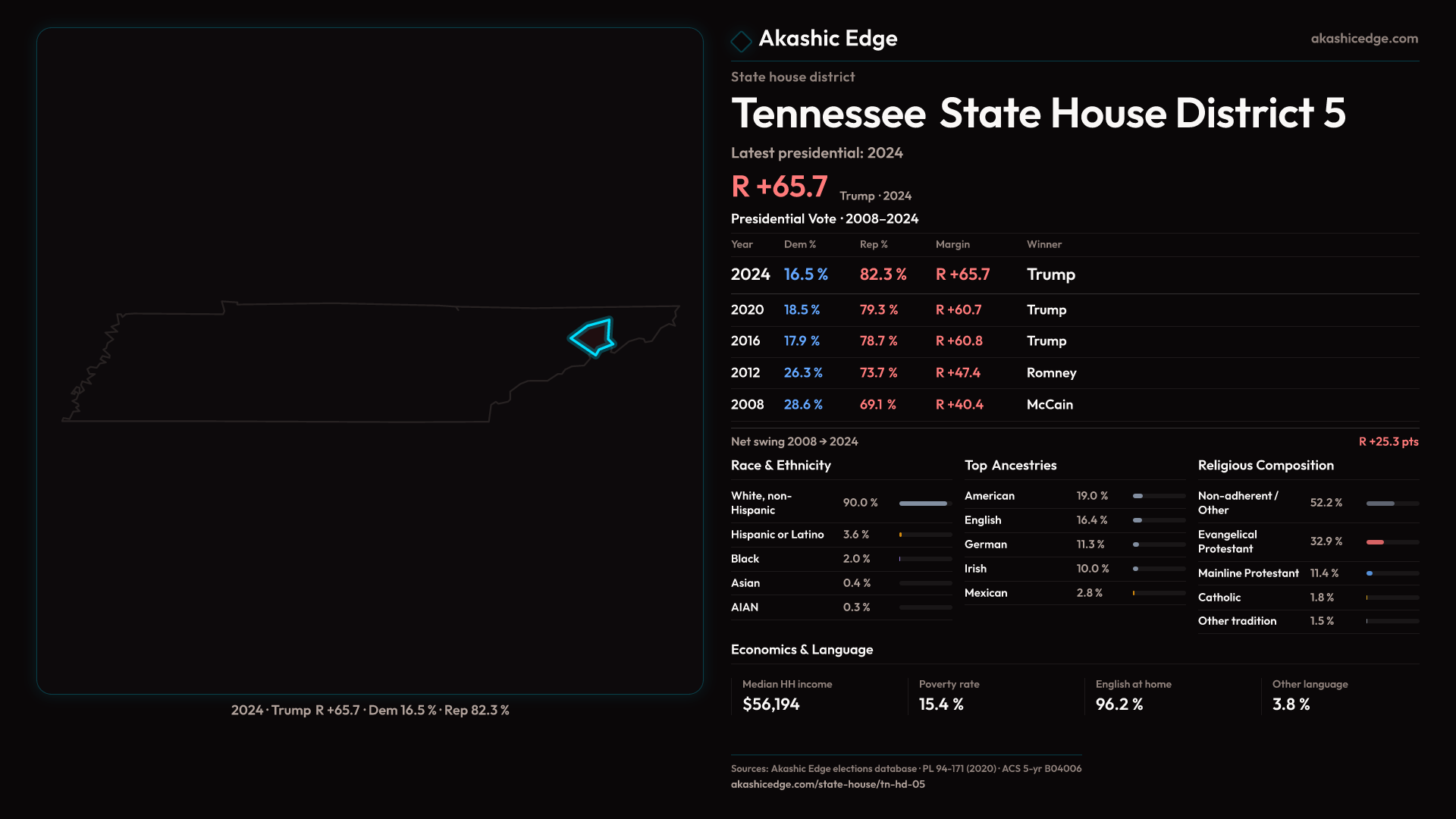 Read this geography's profile in three layers: local, state (where available), and national baseline.