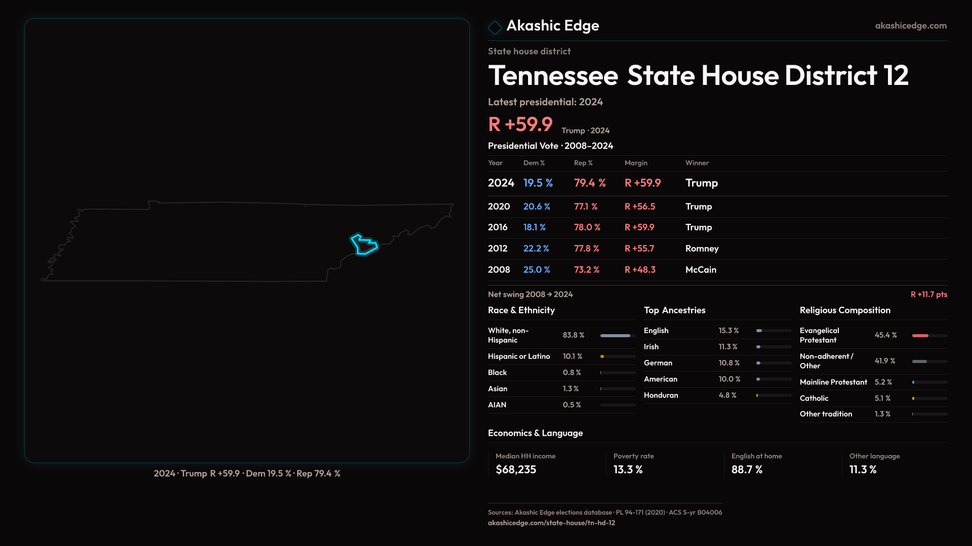 Who lives in Tennessee State House District 12? 66,611 residents as of the 2020 Census.