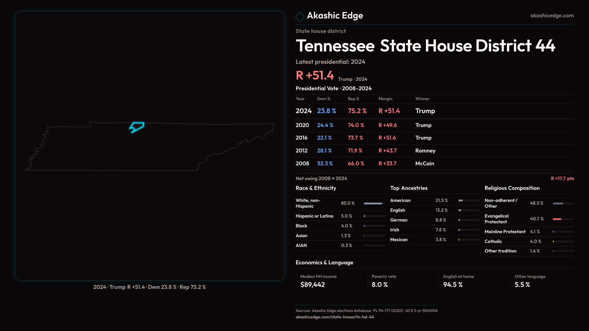 Read this geography's profile in three layers: local, state (where available), and national baseline.