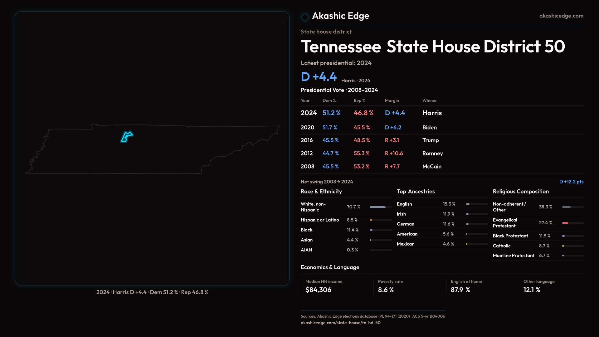 Who lives in Tennessee State House District 50? 66,496 residents as of the 2020 Census.