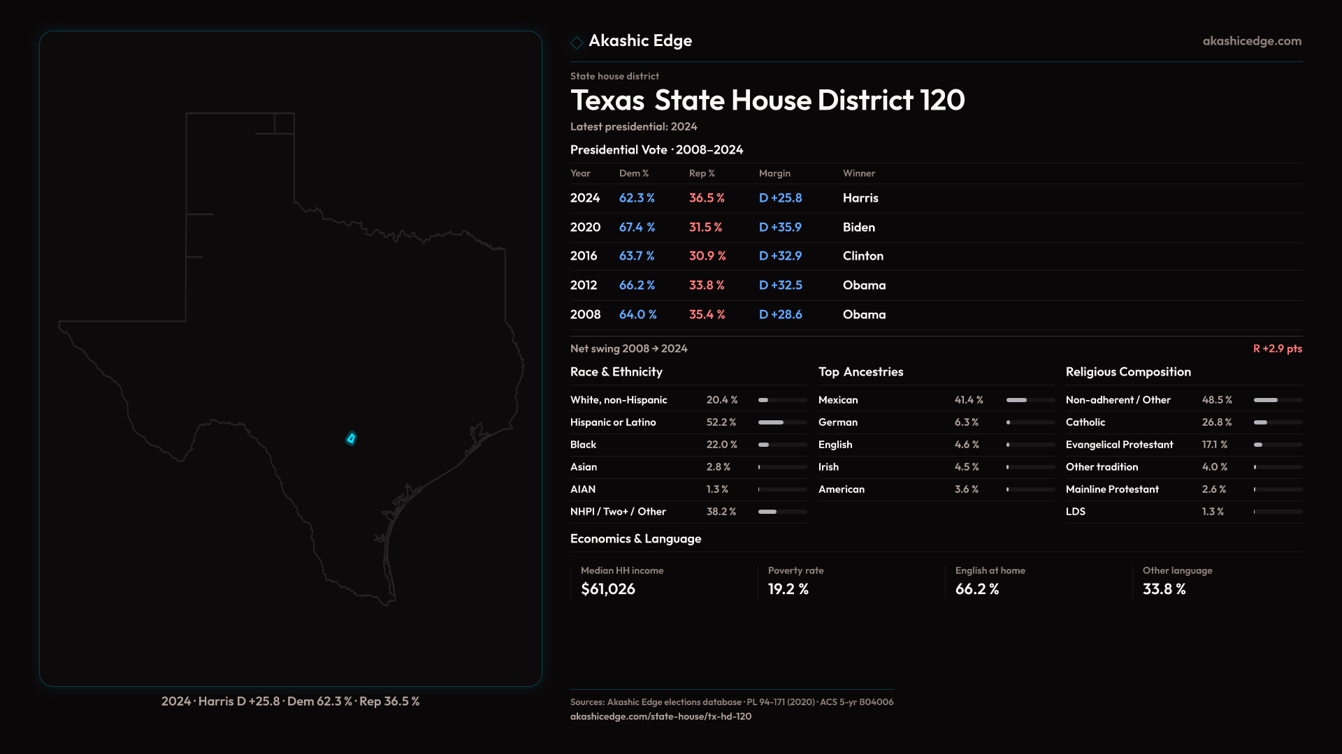 Shifted 10.2pp toward Republicans in 2024 — 200K residents