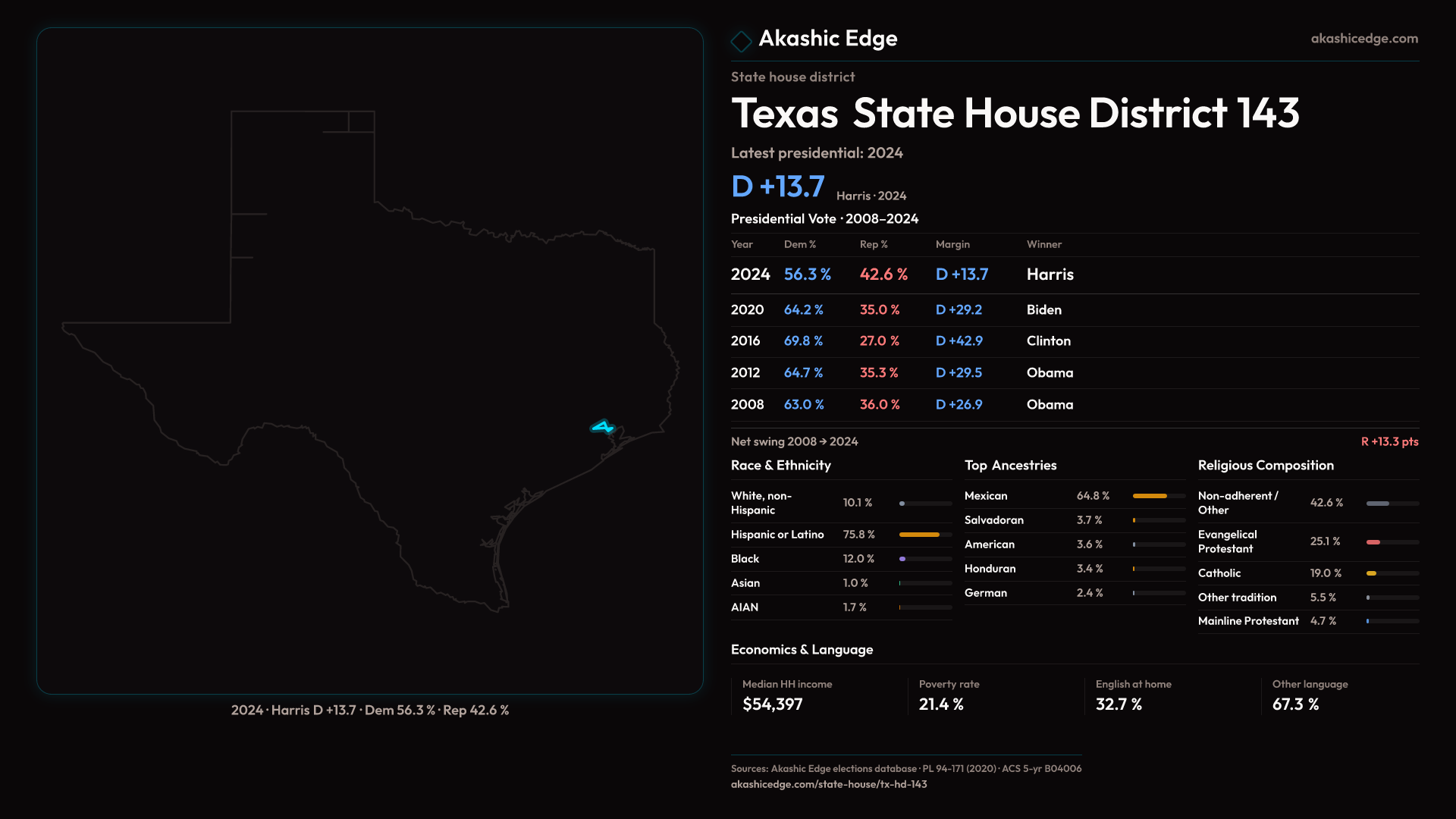 Explore TX-HD-143's political evolution with the Historian