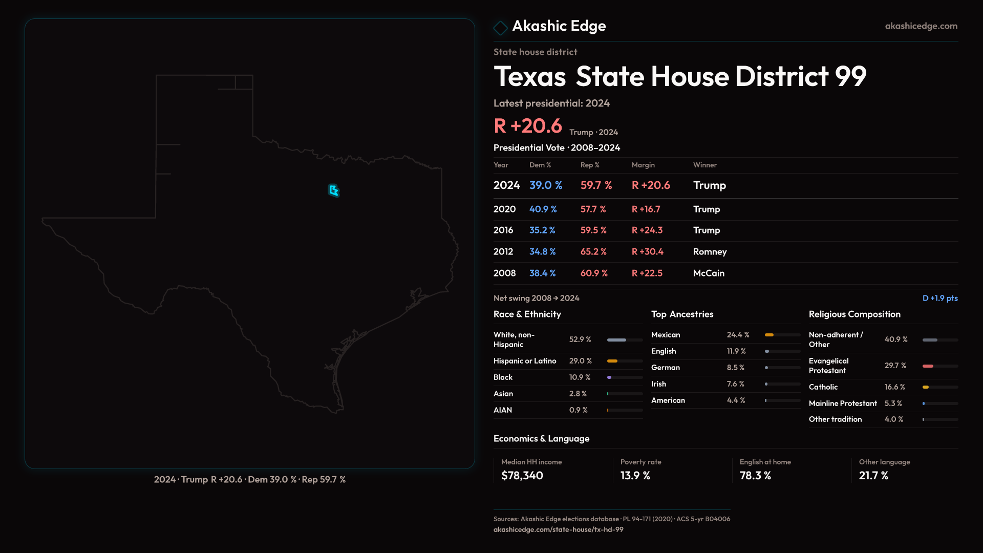 Shifted 3.9pp toward Republicans in 2024 — 195K residents