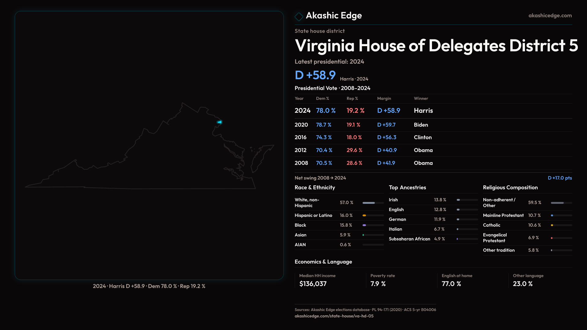 Who lives in Virginia House of Delegates District 5? 88,110 residents as of the 2020 Census.