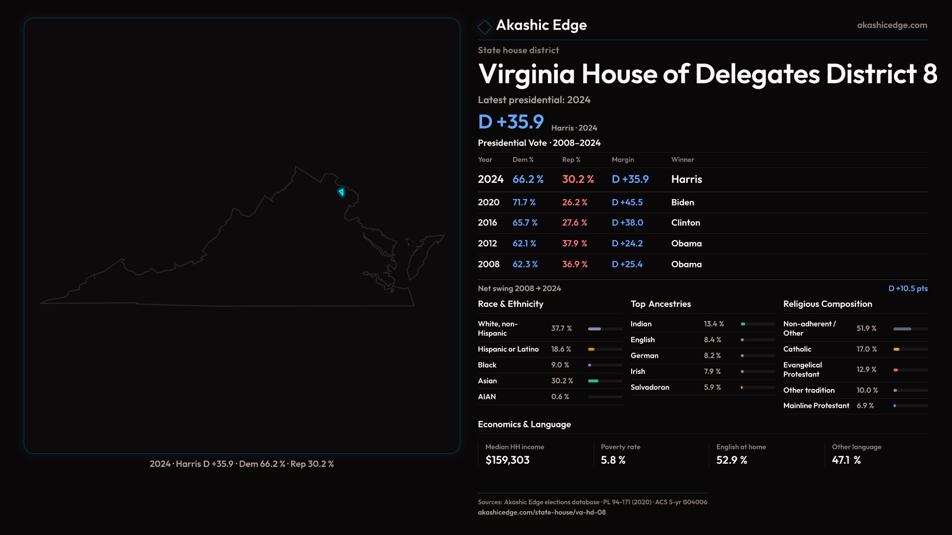 Who lives in Virginia House of Delegates District 8? 87,271 residents as of the 2020 Census.