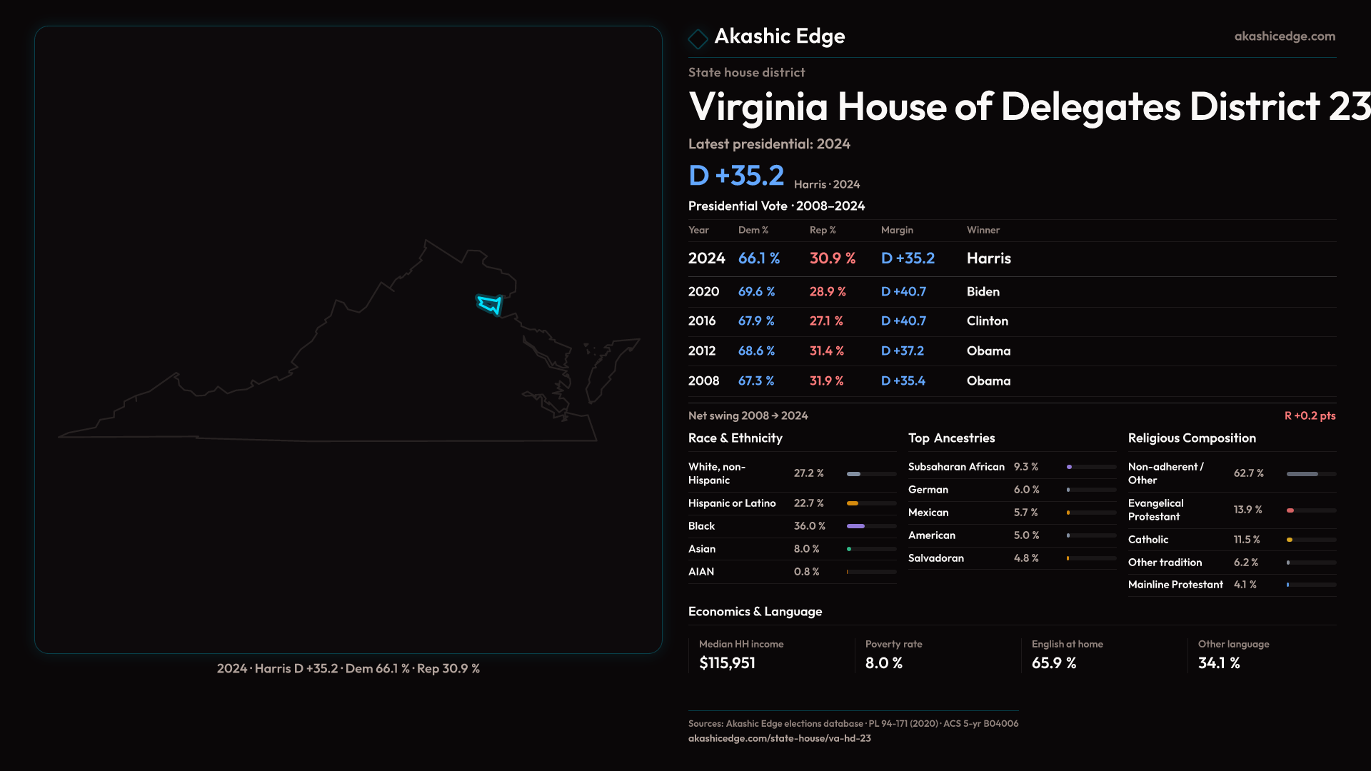 Read this geography's profile in three layers: local, state (where available), and national baseline.