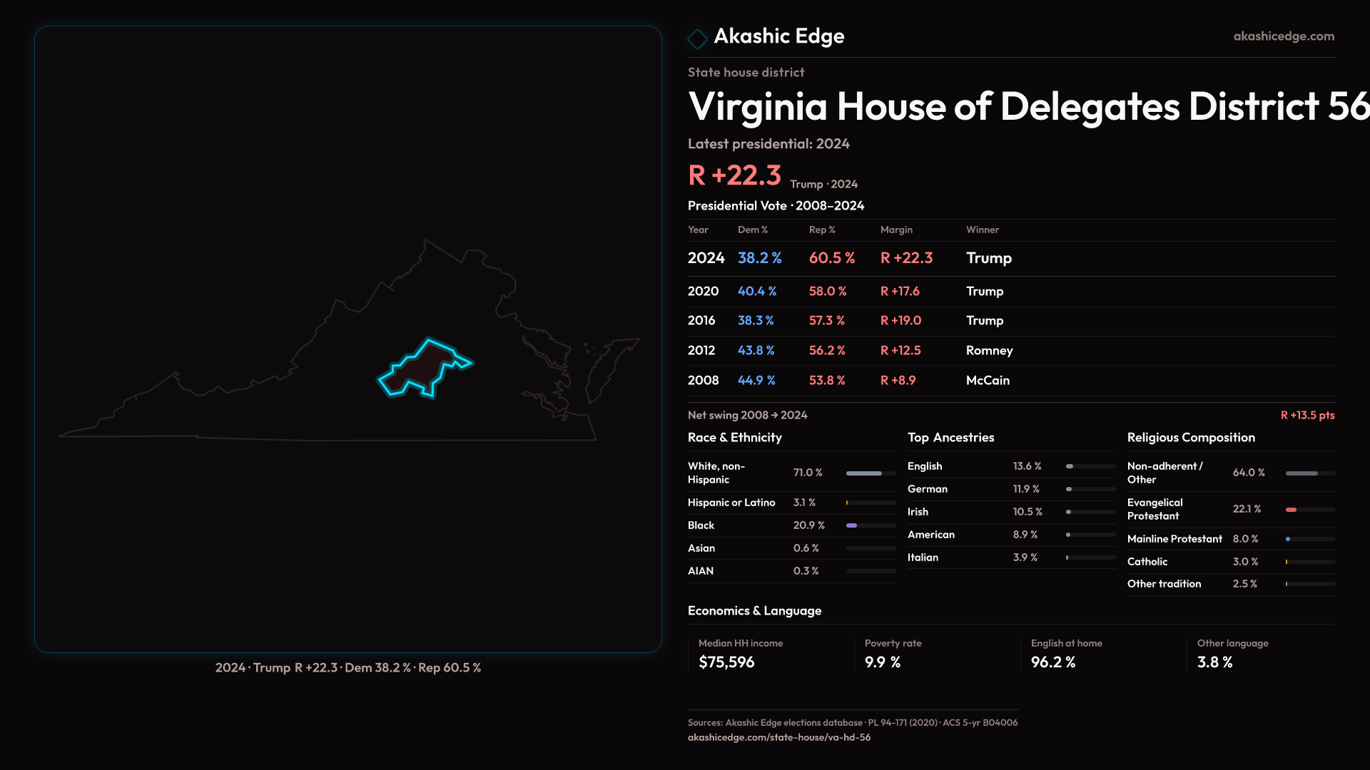 Who lives in Virginia House of Delegates District 56? 89,282 residents as of the 2020 Census.