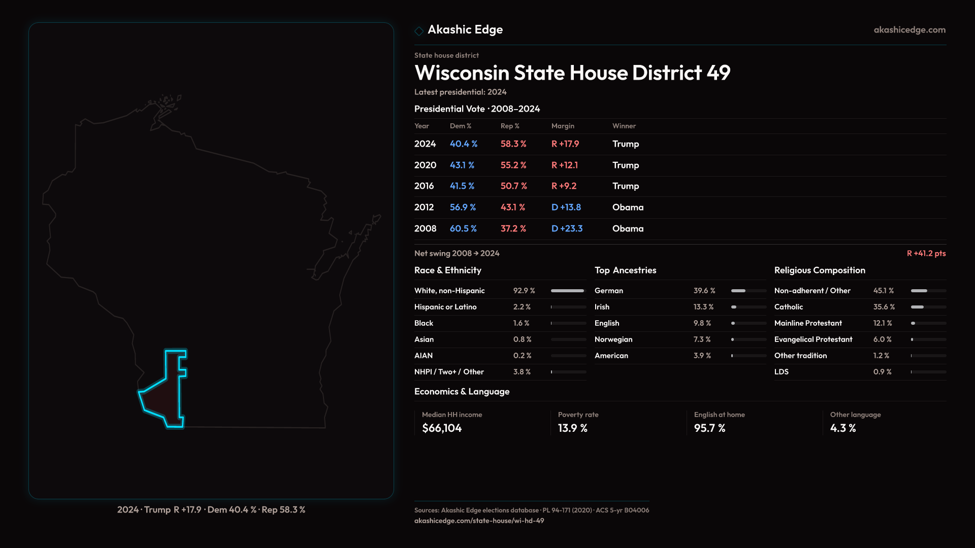 Who lives in Wisconsin State House District 49? 59,708 residents as of the 2020 Census.