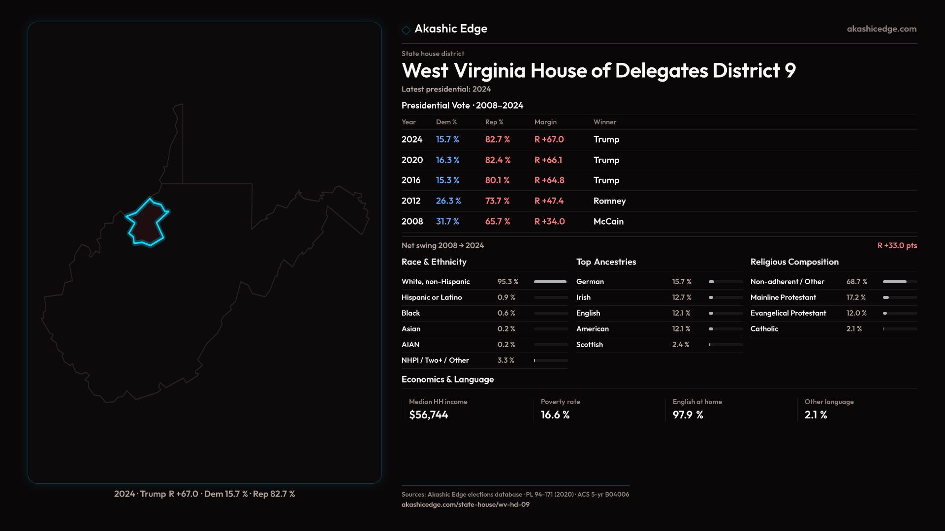 Read this geography's profile in three layers: local, state (where available), and national baseline.