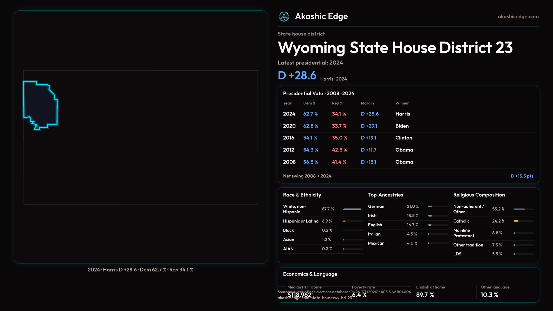 Who lives in Wyoming State House District 23? 9,547 residents as of the 2020 Census.