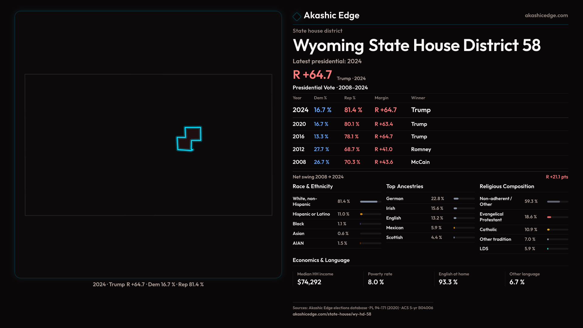 Who lives in Wyoming State House District 58? 9,594 residents as of the 2020 Census.
