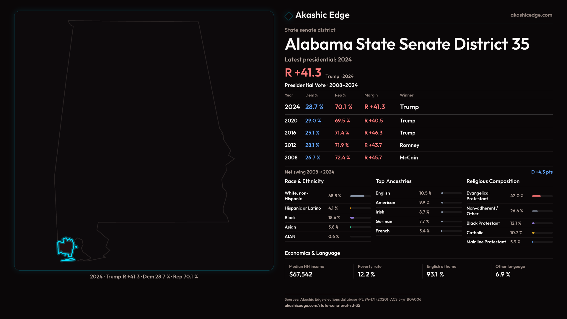 Read this geography's profile in three layers: local, state (where available), and national baseline.