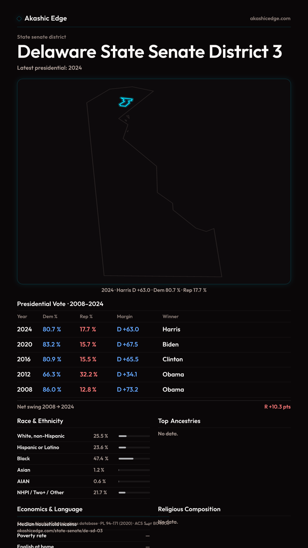 Read this geography's profile in three layers: local, state (where available), and national baseline.