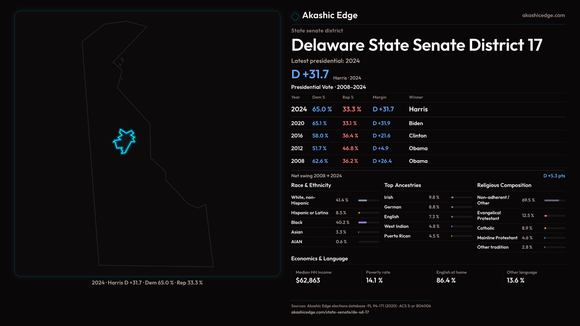 Who lives in Delaware State Senate District 17? 48,809 residents as of the 2020 Census.