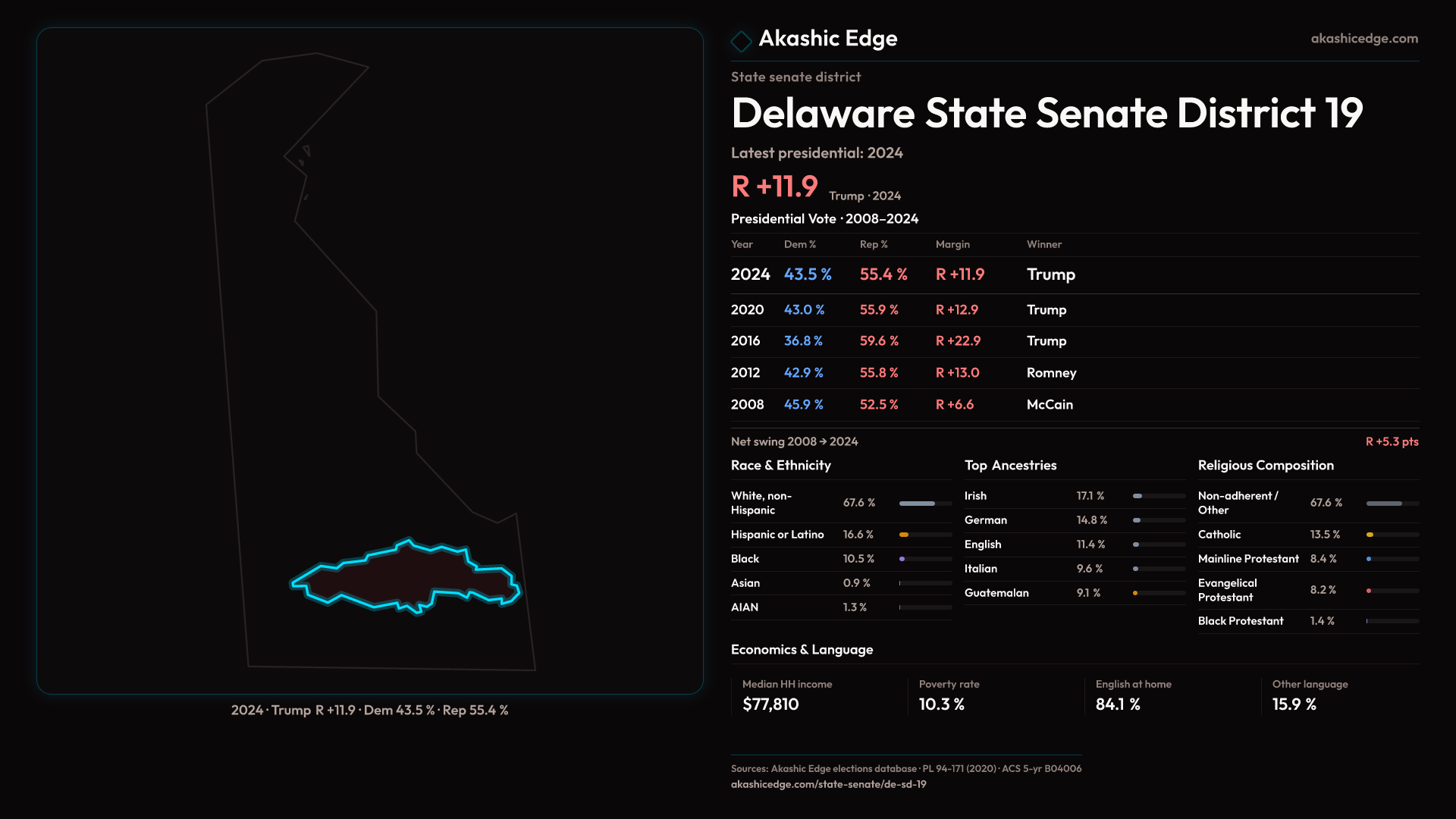 Who lives in Delaware State Senate District 19? 49,666 residents as of the 2020 Census.