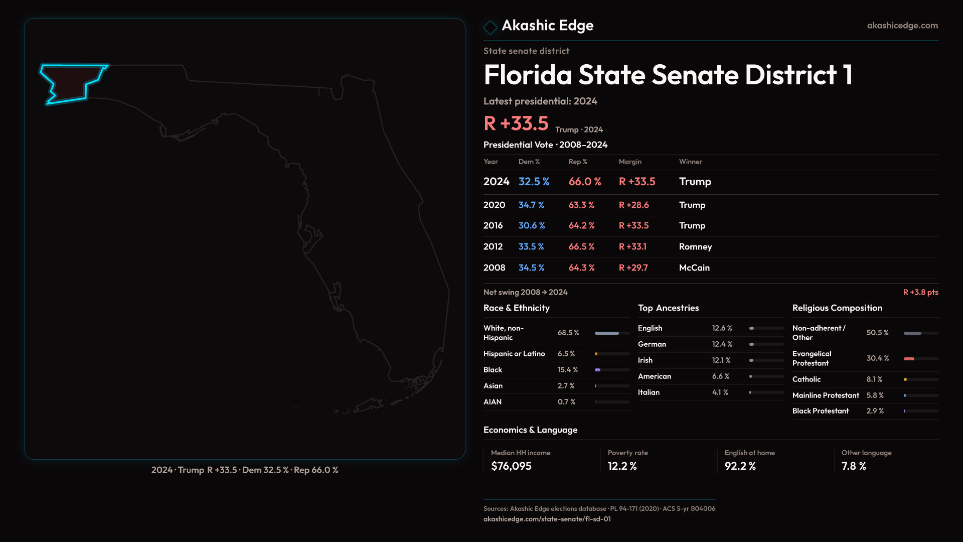 Read this geography's profile in three layers: local, state (where available), and national baseline.