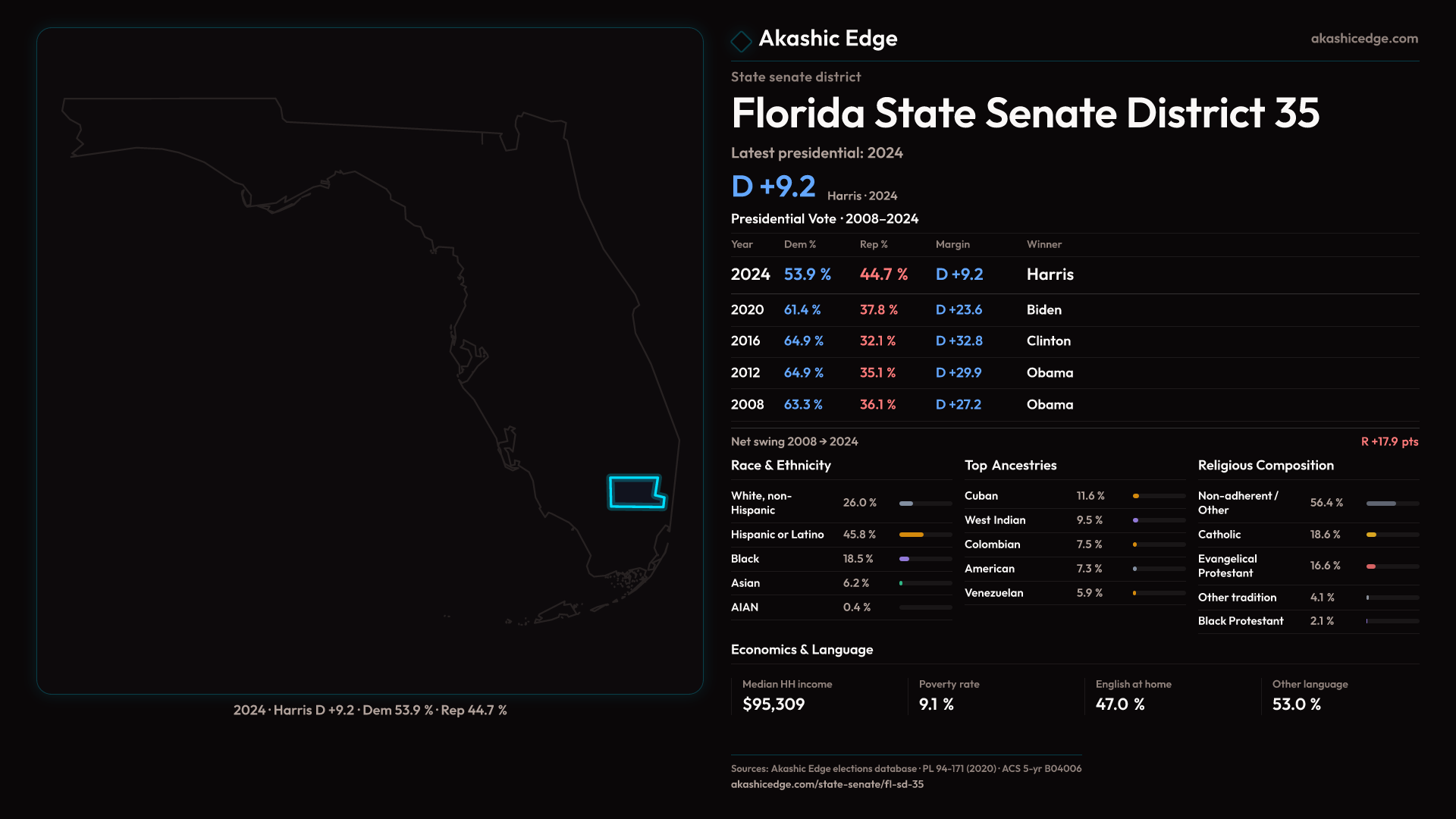 Who lives in Florida State Senate District 35? 542,250 residents as of the 2020 Census.